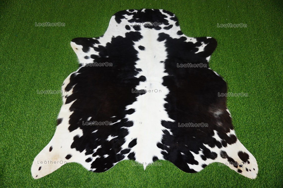 Black White Medium (5 X 5 ft.) Exact As Photo Cowhide RUG | 100% Natural Cowhide Area Rug | Genuine Hair-on Cowhide Leather Rug | C811