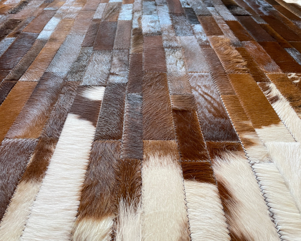 Expertly handcrafted from the premium Cowhides, these Cowhide Rugs are skillfully sewn together. These patchwork rugs present an eye-catching geometric version of the traditional cowhide. Each cowhide area rug is made up of a combination of spectacular color tones, making it ideal for any room.