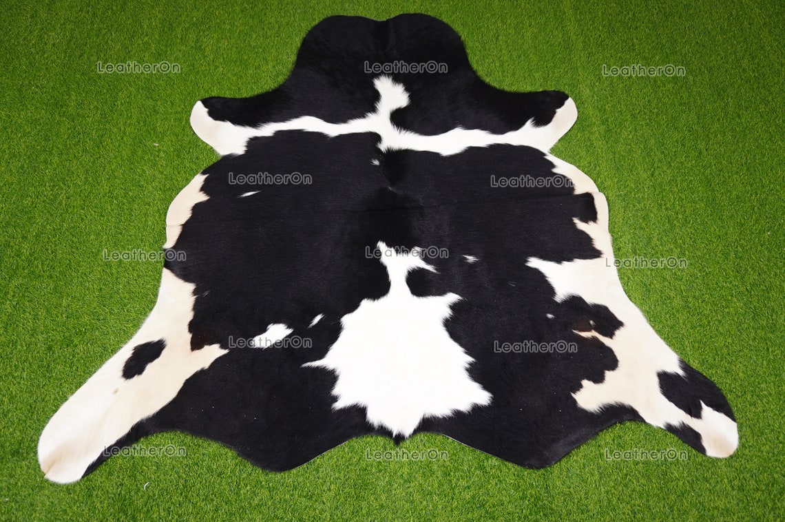 Black White Medium (5 X 5.4 ft.) Exact As Photo Cowhide RUG | 100% Natural Cowhide Area Rug | Genuine Hair-on Cowhide Leather Rug | C745