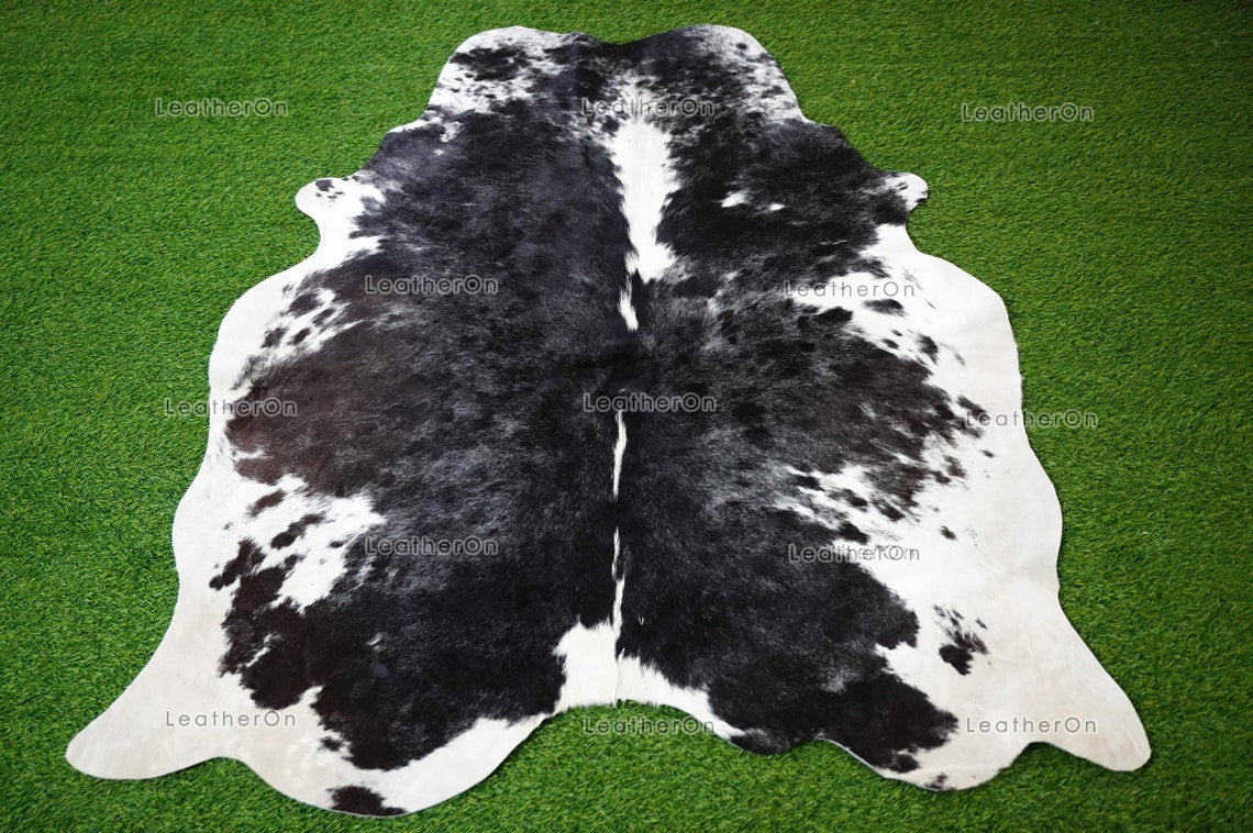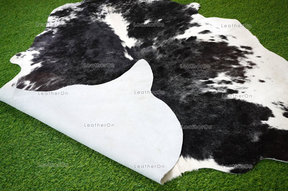 Small (4.6 x 4.2 ft.) EXACT As Photo, Black White COWHIDE RUG | 100% Natural Cowhide Area Rug | Hair-on Cowhide Leather Rug | C642