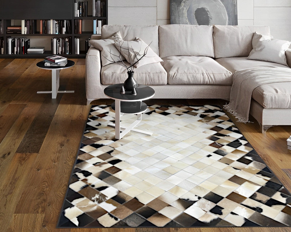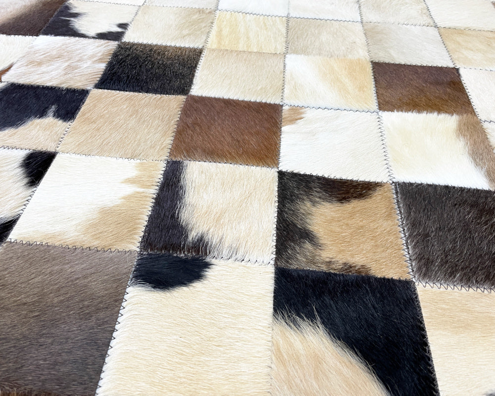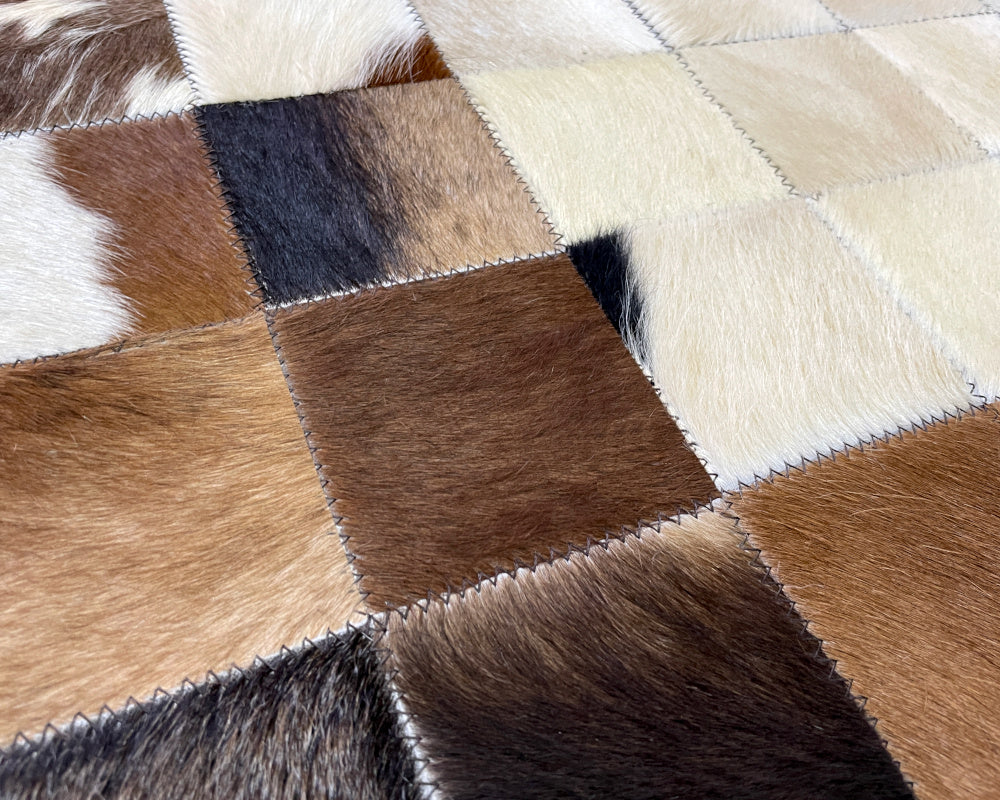 Expertly handcrafted from the premium Cowhides, these Cowhide Rugs are skillfully sewn together. These patchwork rugs present an eye-catching geometric version of the traditional cowhide. Each cowhide area rug is made up of a combination of spectacular color tones, making it ideal for any room.