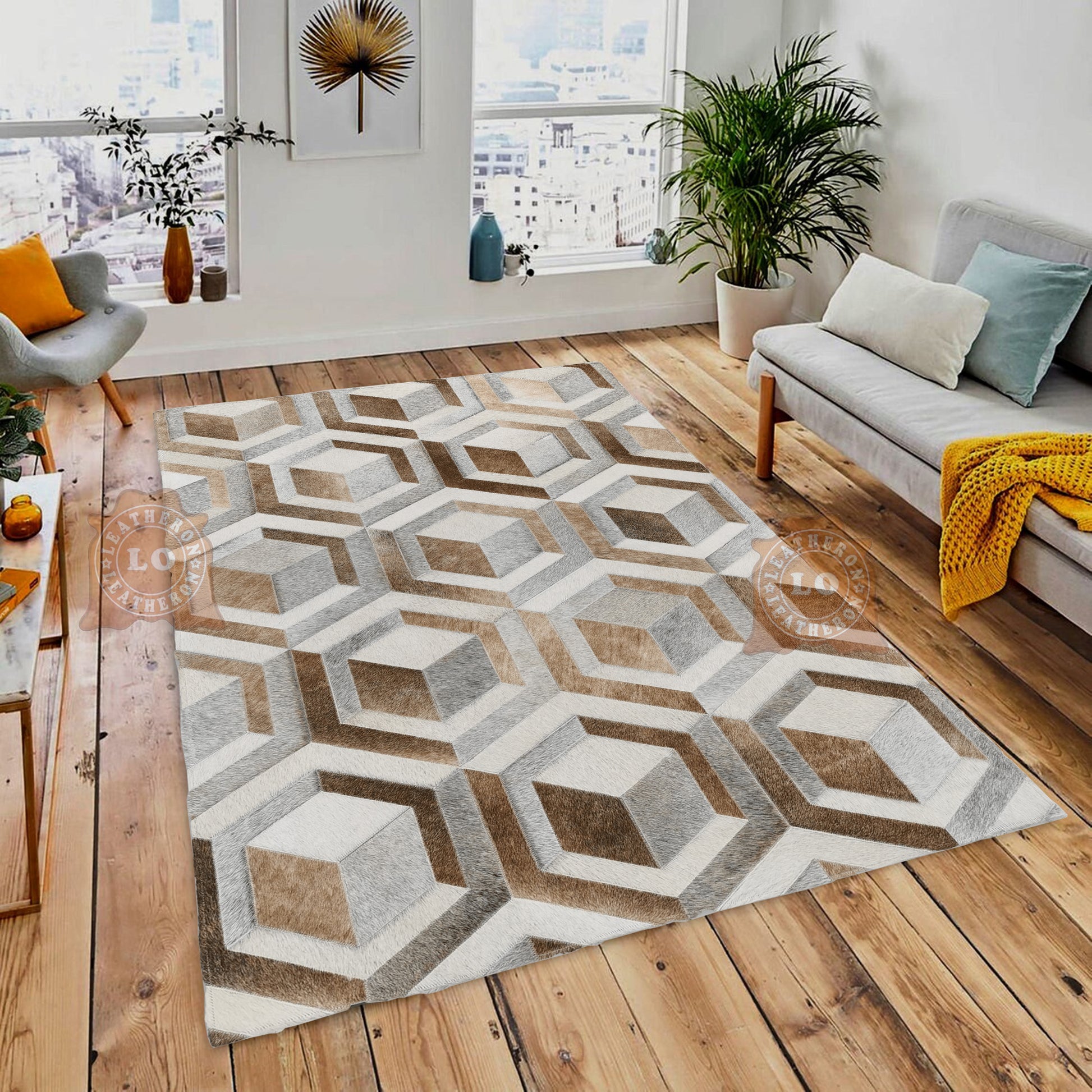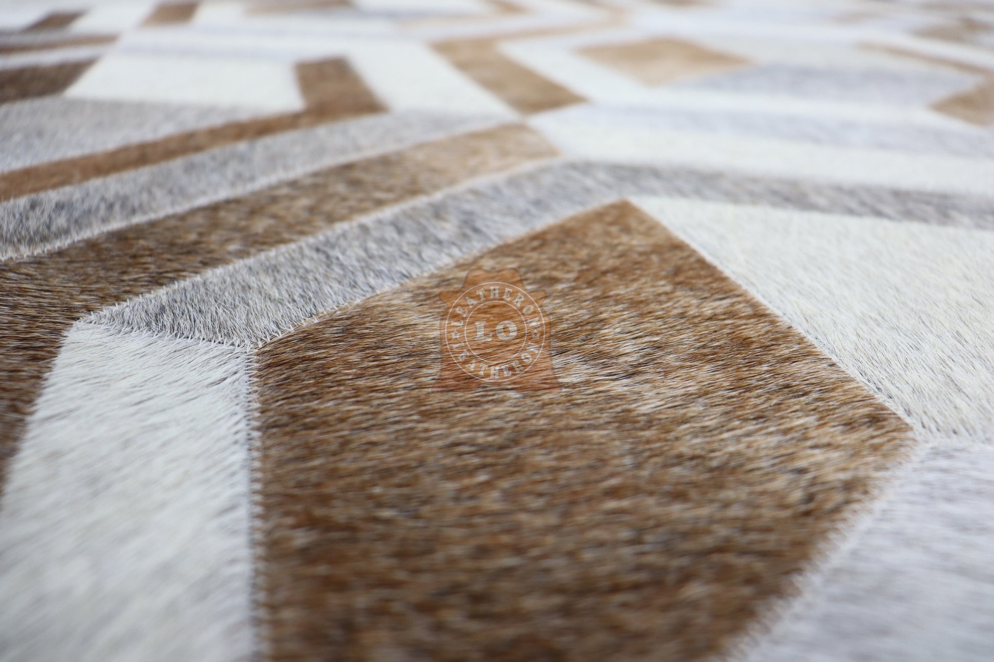 Expertly handcrafted from the premium Cowhides, these Cowhide Rugs are skillfully sewn together. These patchwork rugs present an eye-catching geometric version of the traditional cowhide. Each cowhide area rug is made up of a combination of spectacular color tones, making it ideal for any room.