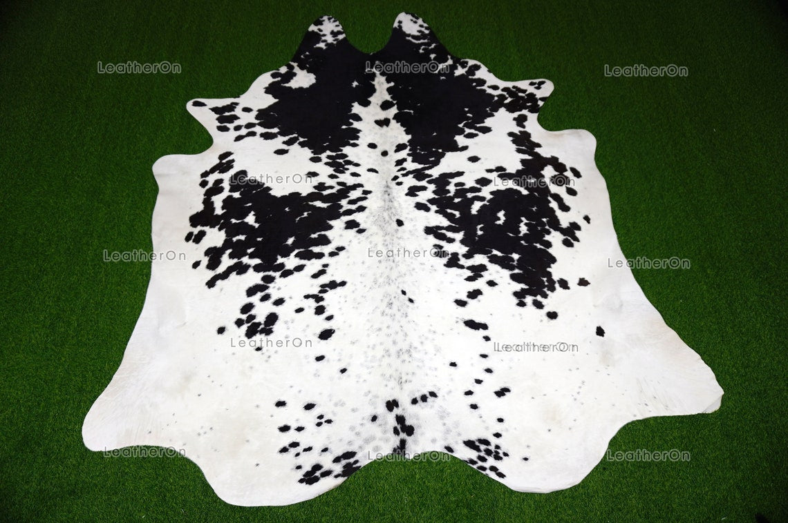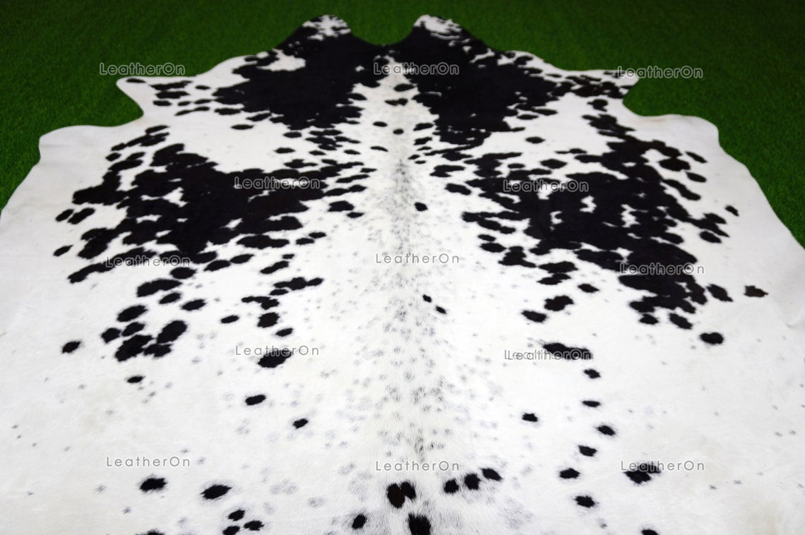 Black White XLARGE (7 X 6.6 ft.) Exact As Photo Cowhide Rug | 100% Natural Cowhide Area Rug | Real Hair-on Leather Cowhide Rug | C725
