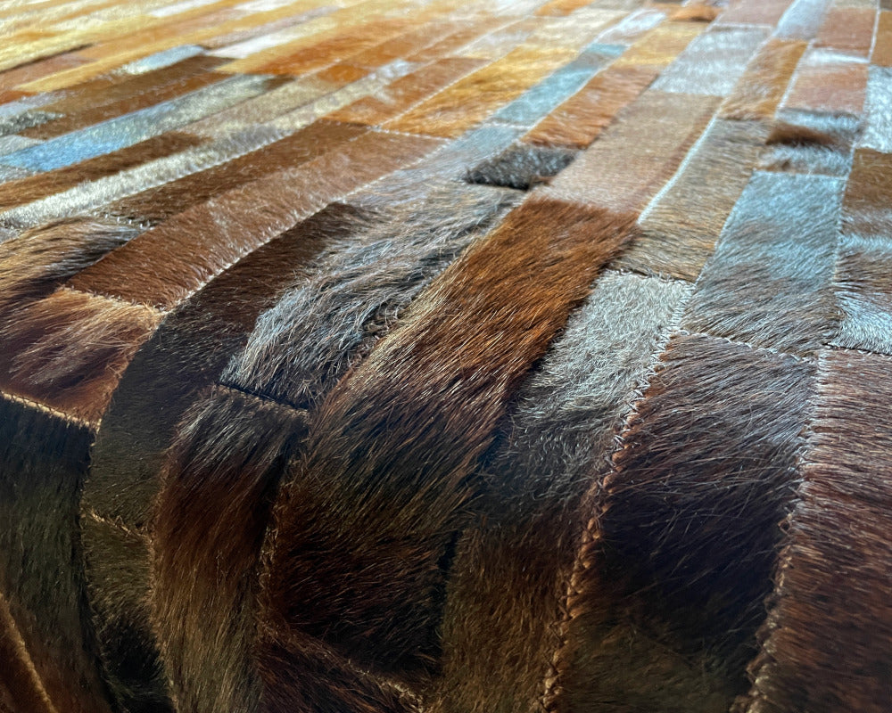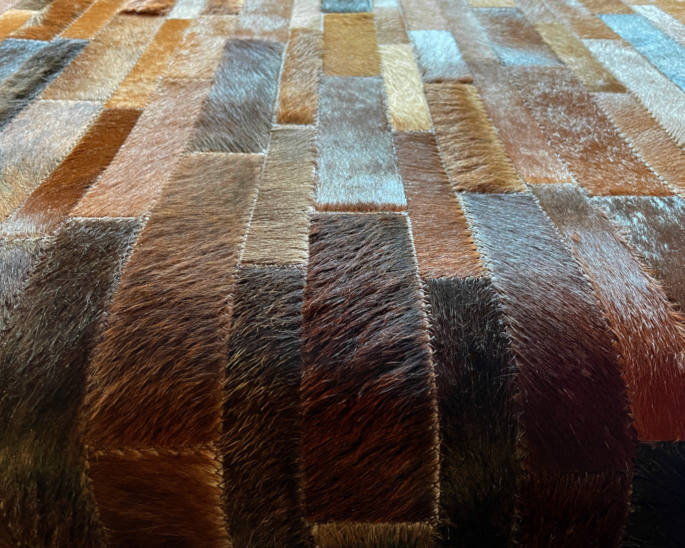 Expertly handcrafted from the premium Cowhides, these Cowhide Rugs are skillfully sewn together. These patchwork rugs present an eye-catching geometric version of the traditional cowhide. Each cowhide area rug is made up of a combination of spectacular color tones, making it ideal for any room.