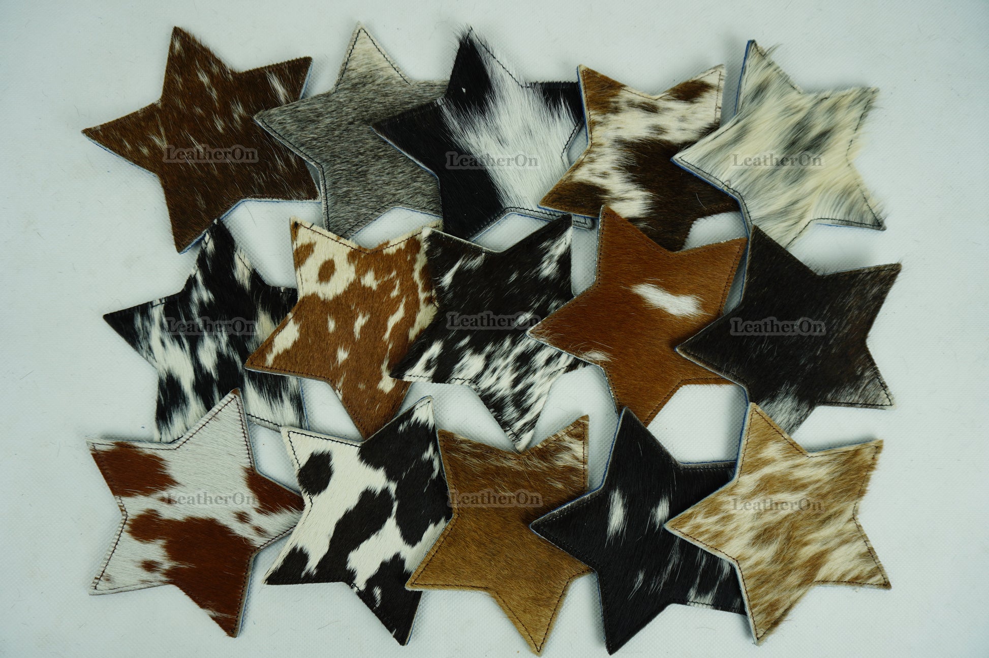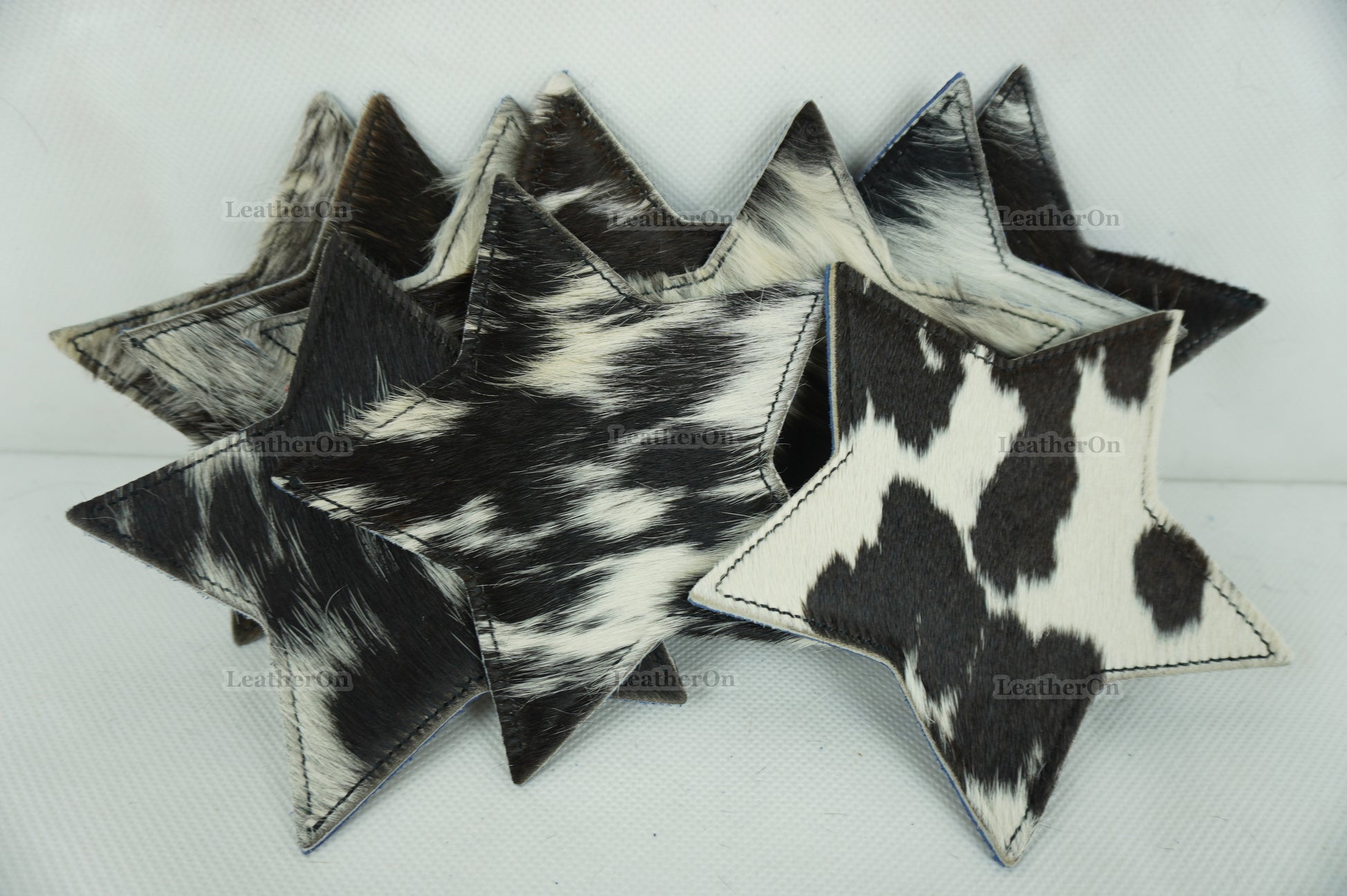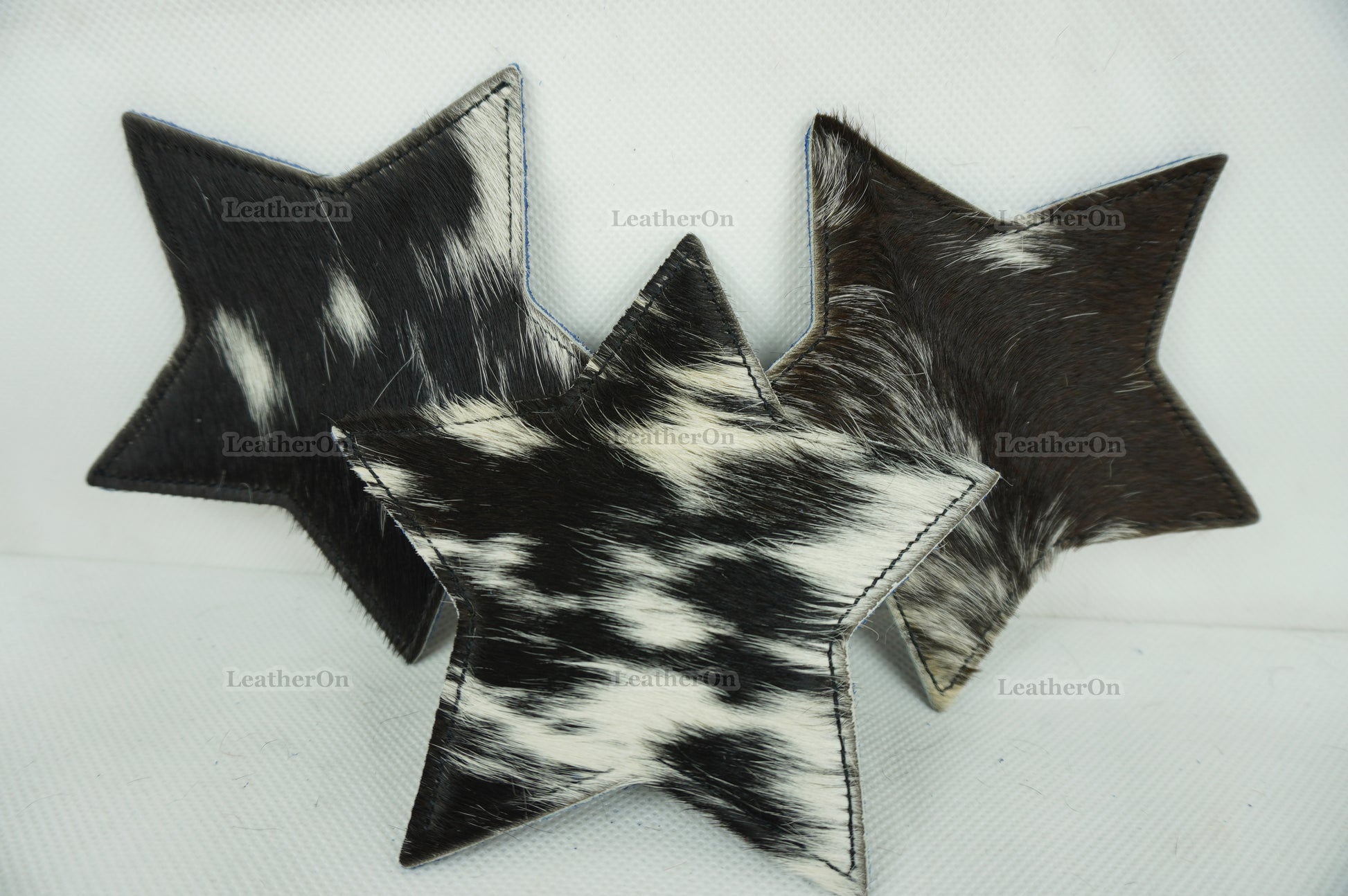 Cowhide Tea Coasters | Real Hair-on-Leather Tea Coasters | Star Shape Multi Color