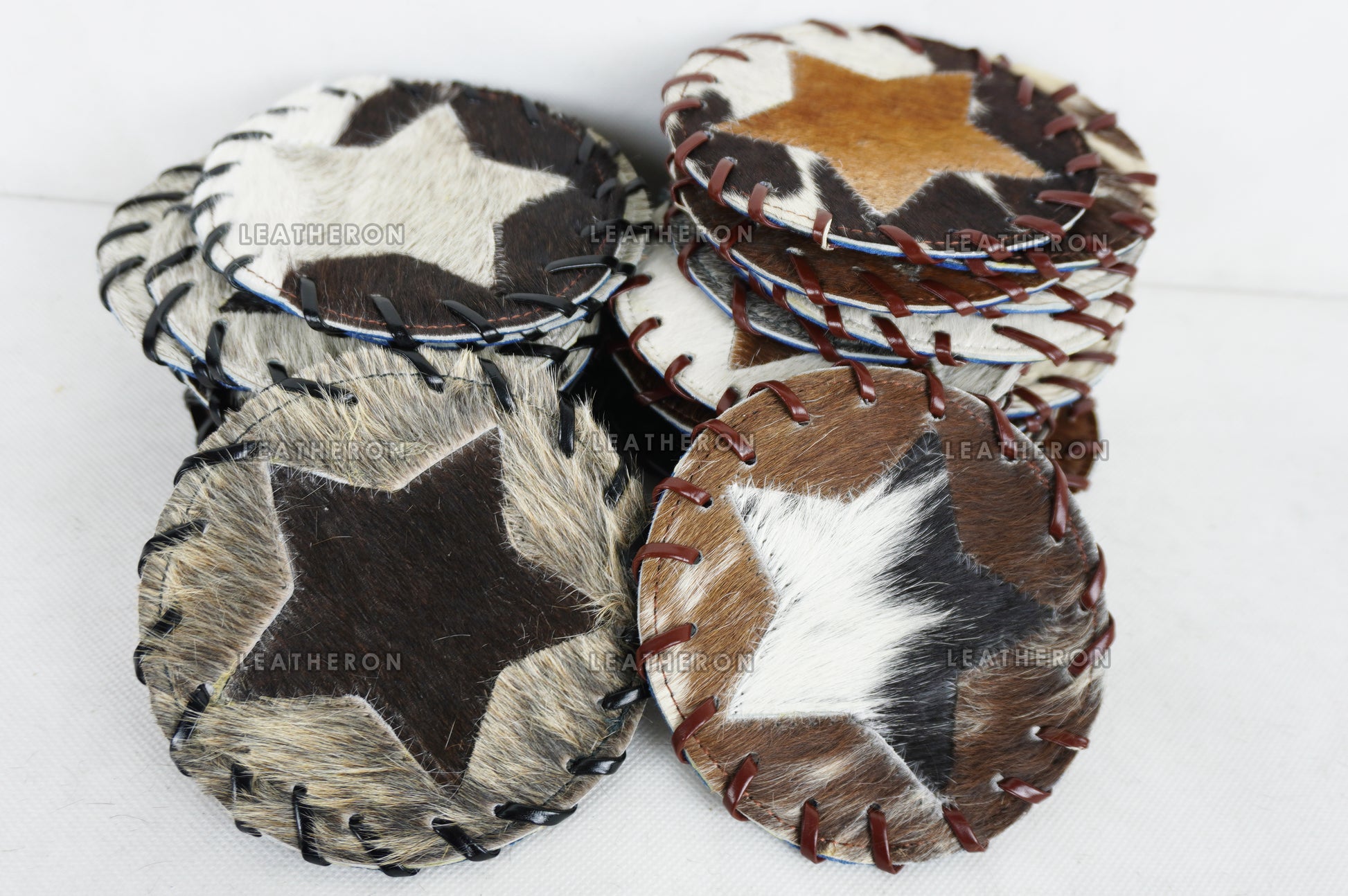 Cowhide Tea Coasters Real Hair-on-Leather Tea Coasters Natural Cow Skin Tea Coasters | CST2