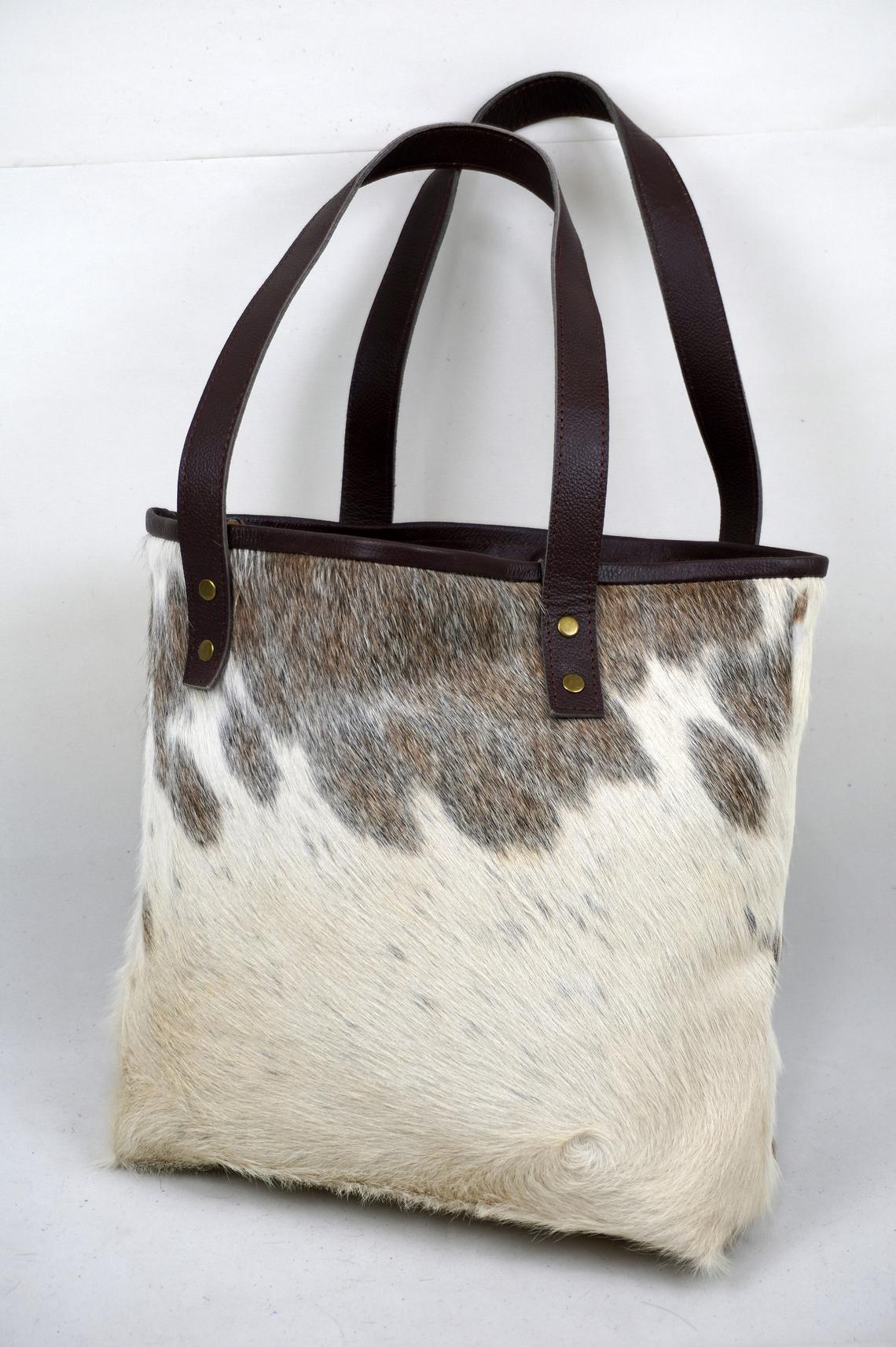 Double Sided Natural Cowhide Tote Bags | Hair On Leather Cowhide Handbags | Real Cow Skin Shoulder Bags | DTB119
