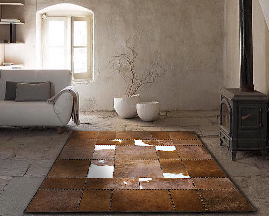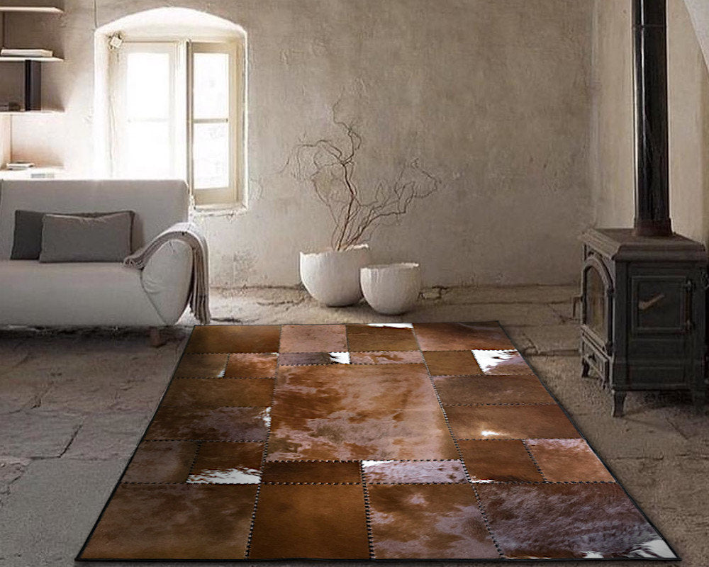 Expertly handcrafted from the premium Cowhides, these Cowhide Rugs are skillfully sewn together. These patchwork rugs present an eye-catching geometric version of the traditional cowhide. Each cowhide area rug is made up of a combination of spectacular color tones, making it ideal for any room.