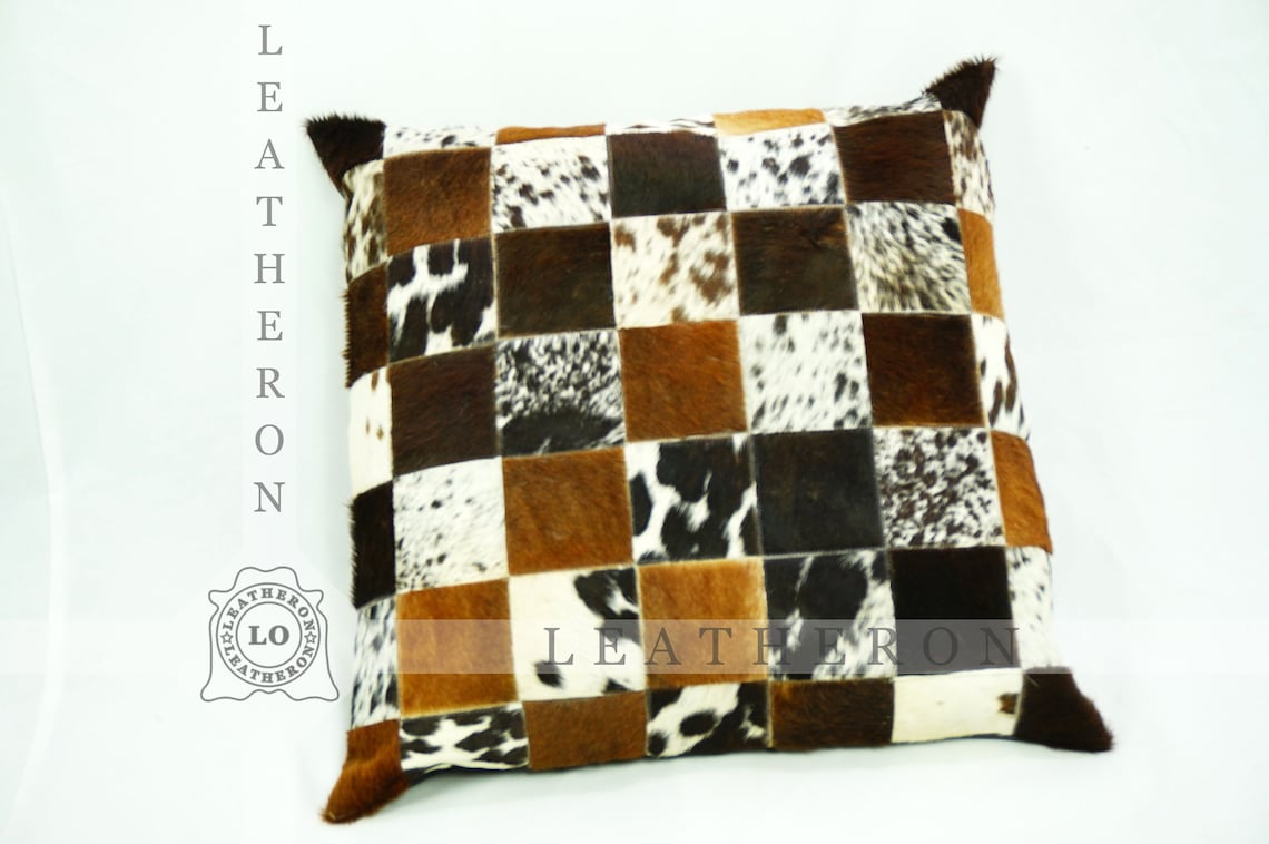Genuine Cowhide Pillow Covers Natural Hair on Leather Cushion Covers Real Cowhide Pillow Cases Original Cow Skin Cushion Cases | PLW 206
