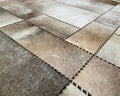 Handcrafted Cowhide Leather Area Rug, Luxury Non-Slip Patchwork Carpet, Premium Floor Accent Rug for Dining, Living Room | Cow Skin Hallway Runner | Entryway Carpet | 508