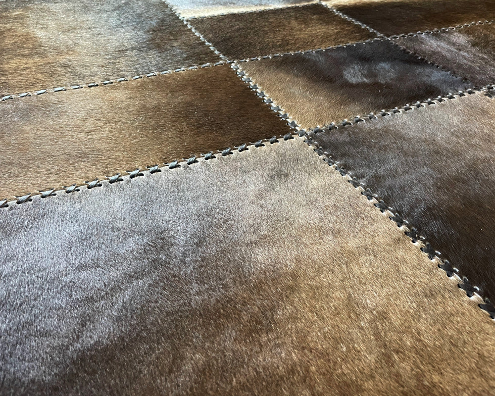 Unique Interior Decor: Handcrafted Cowhide Leather Rug | Hair on Patchwork Carpet | 515