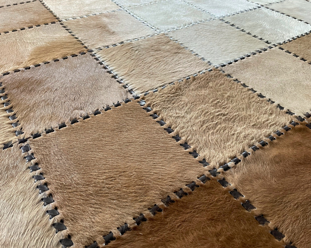 100% Cowhide Patchwork Carpet - Luxurious Floor Covering | Hallway Runner | Leather Floor Area Rug | 519