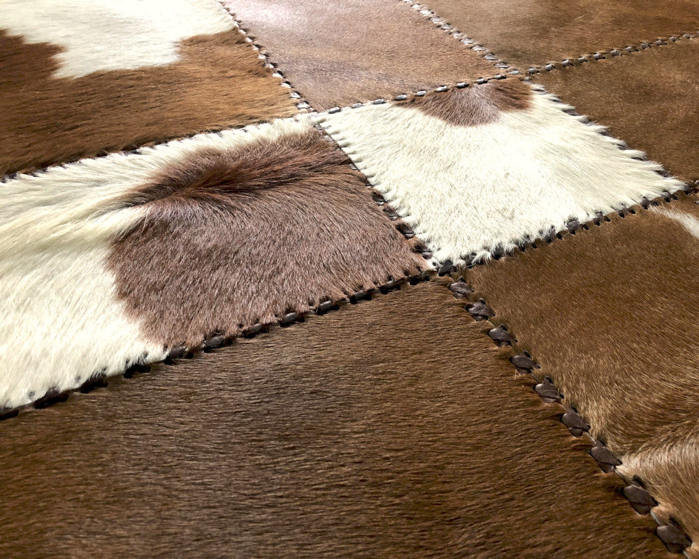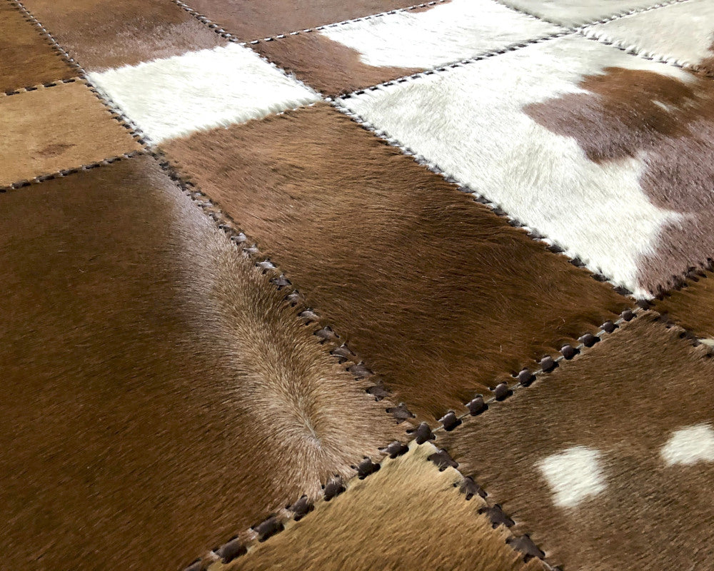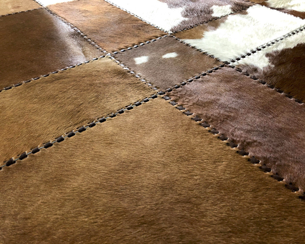 Expertly handcrafted from the premium Cowhides, these Cowhide Rugs are skillfully sewn together. These patchwork rugs present an eye-catching geometric version of the traditional cowhide. Each cowhide area rug is made up of a combination of spectacular color tones, making it ideal for any room.