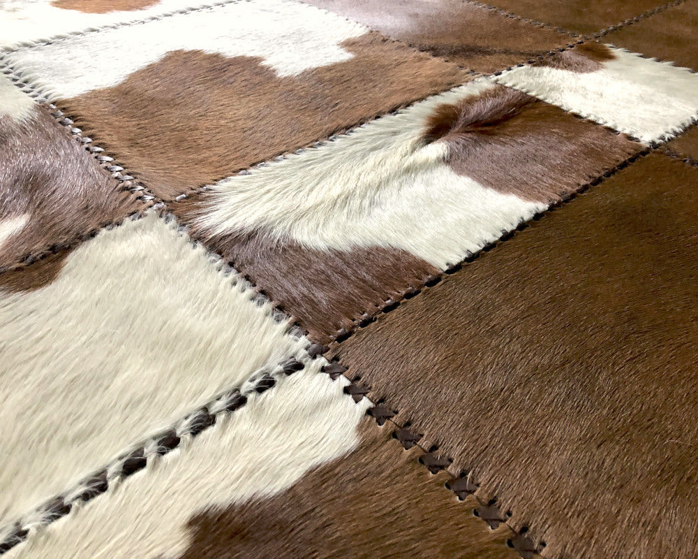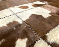 Brown White Natural COWHIDE RUG for Luxurious Interior Decor | Patchwork Area Carpet | Leather Runners for Hallways | 523