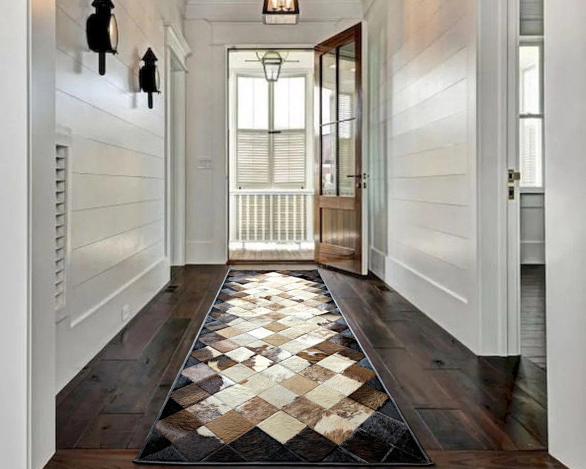 HANDMADE 100% Natural COWHIDE RUG | Patchwork Cowhide Area Rug | Real Cowhide Hallway Runner | Hair on Leather Cowhide Carpet | PR59