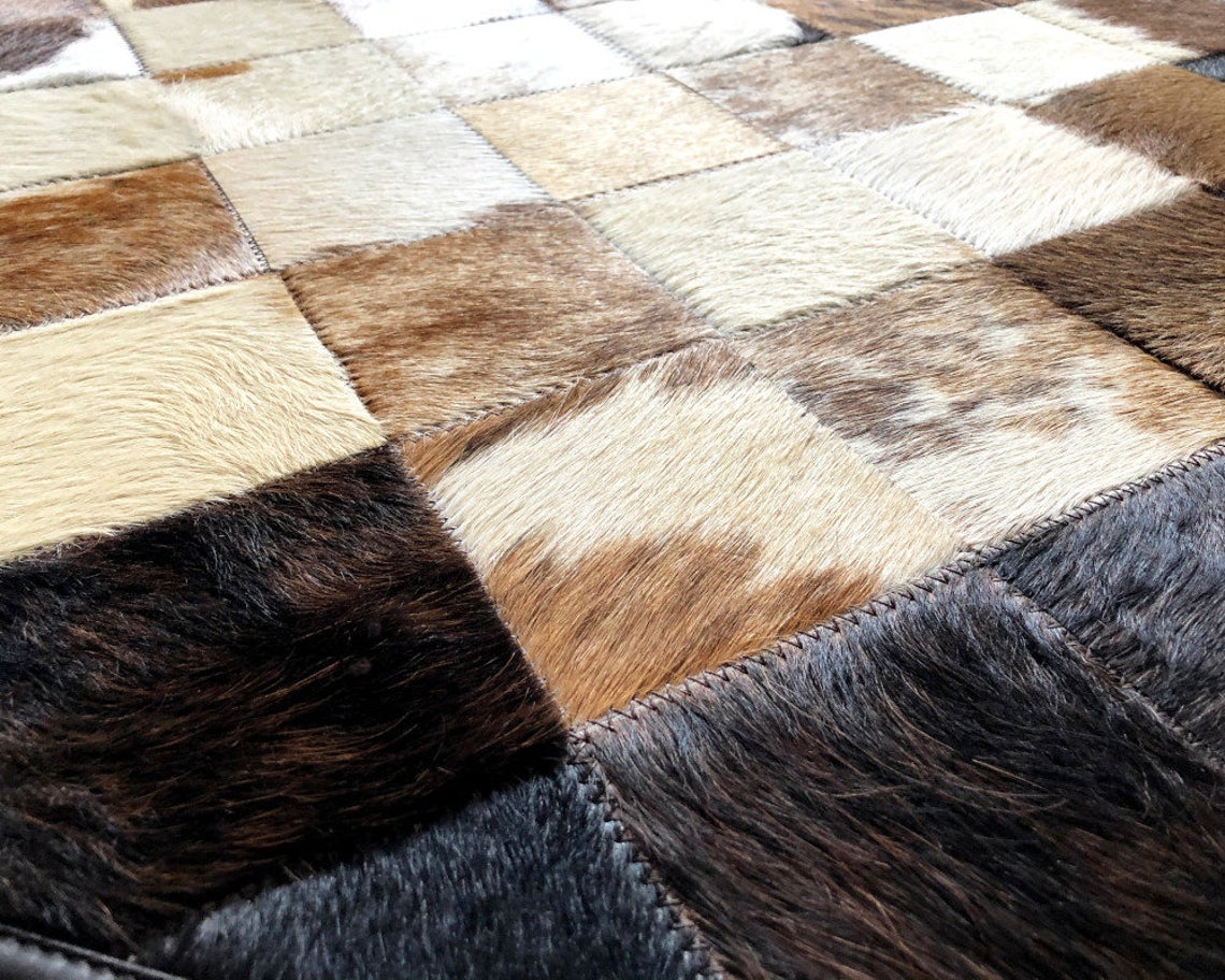 Expertly handcrafted from the premium Cowhides, these Cowhide Rugs are skillfully sewn together. These patchwork rugs present an eye-catching geometric version of the traditional cowhide. Each cowhide area rug is made up of a combination of spectacular color tones, making it ideal for any room.