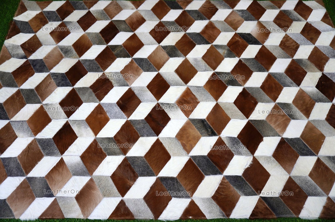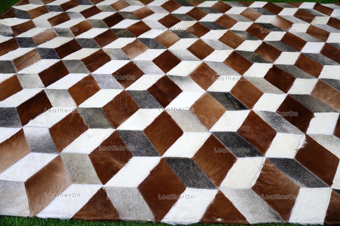 3D HANDMADE 100% Natural COWHIDE AREA RUG | 3D Patchwork Hair on Cowhide Leather Carpet | PR151