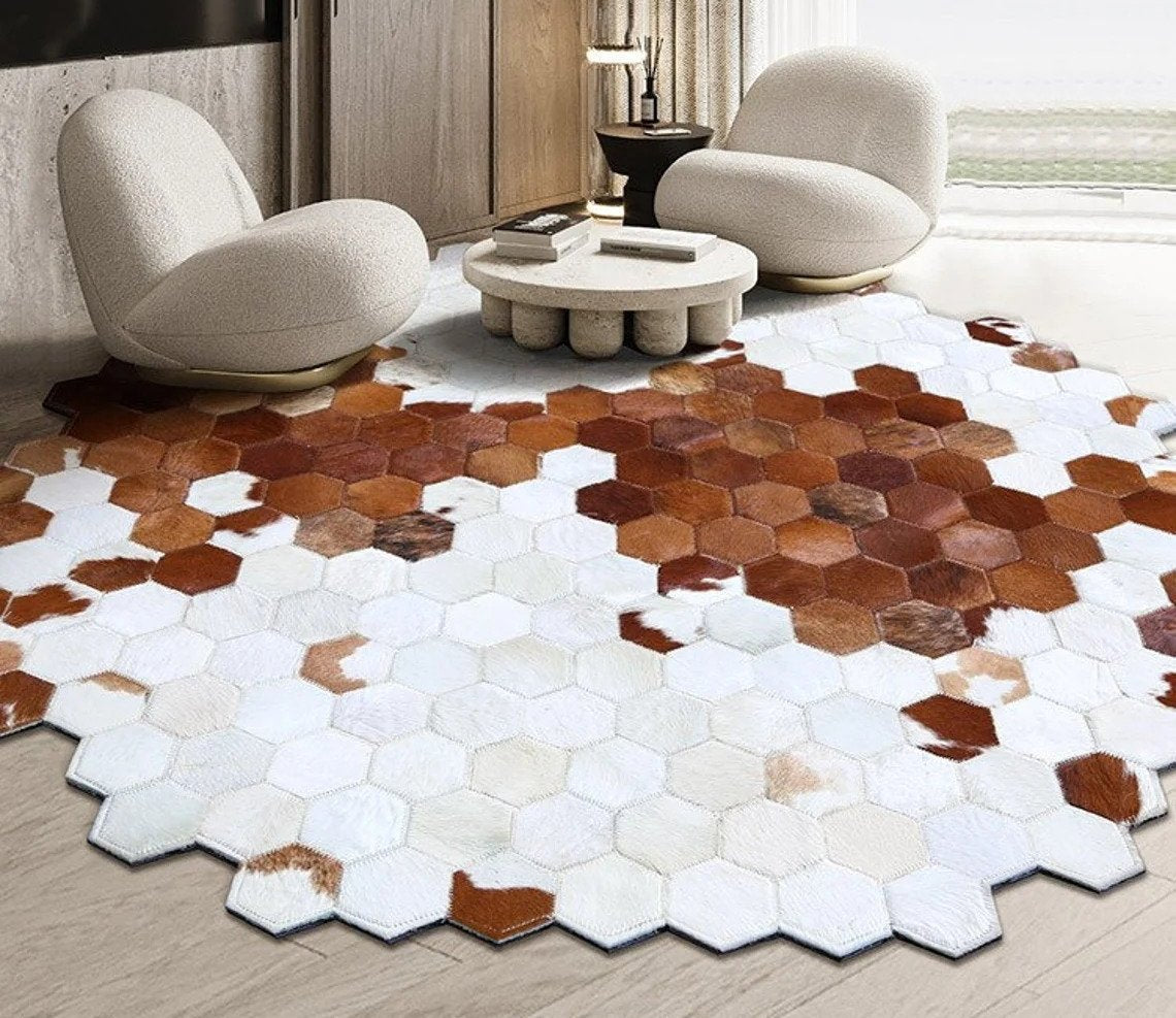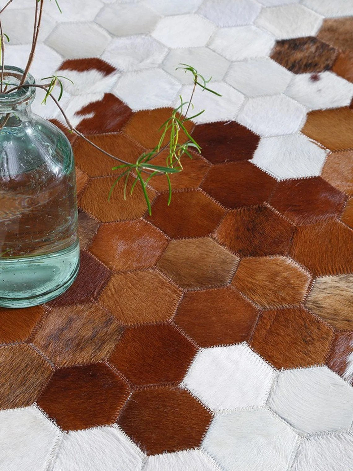 Expertly handcrafted from the premium Cowhides, these Cowhide Rugs are skillfully sewn together. These patchwork rugs present an eye-catching geometric version of the traditional cowhide. Each cowhide area rug is made up of a combination of spectacular color tones, making it ideal for any room.