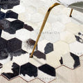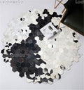 Artisanal Leather Cowhide Rug, Unique Patchwork Design, Hair-On Hide | Hair on Leather Cowhide Carpet | PR137