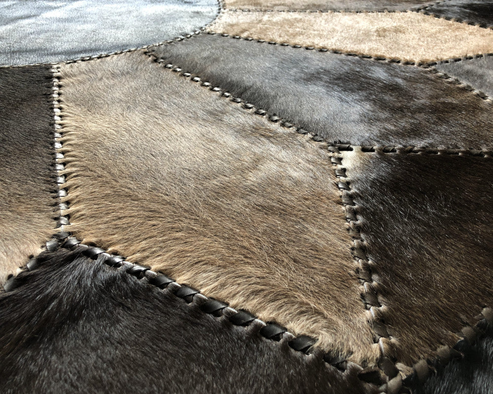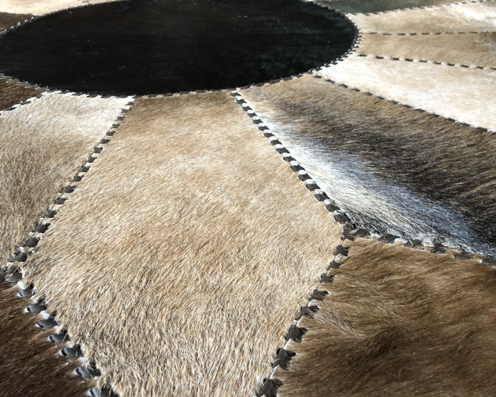 Expertly handcrafted from the premium Cowhides, these Cowhide Rugs are skillfully sewn together. These patchwork rugs present an eye-catching geometric version of the traditional cowhide. Each cowhide area rug is made up of a combination of spectacular color tones, making it ideal for any room.