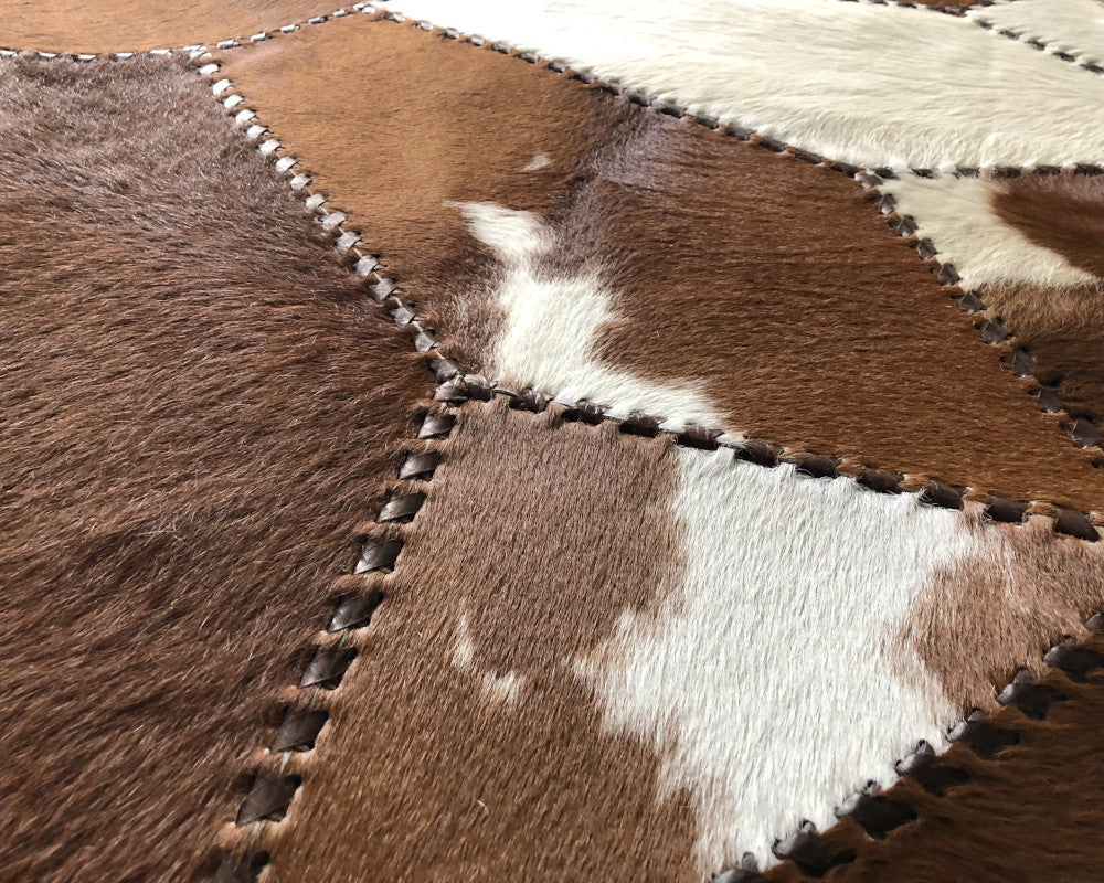 Expertly handcrafted from the premium Cowhides, these Cowhide Rugs are skillfully sewn together. These patchwork rugs present an eye-catching geometric version of the traditional cowhide. Each cowhide area rug is made up of a combination of spectacular color tones, making it ideal for any room.