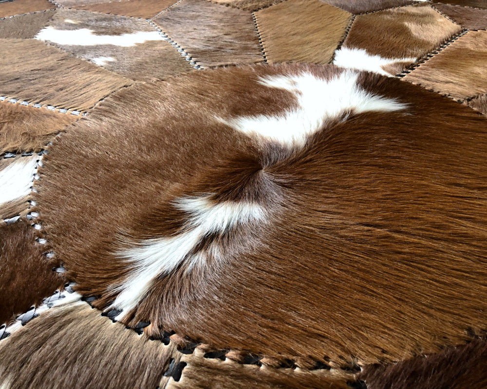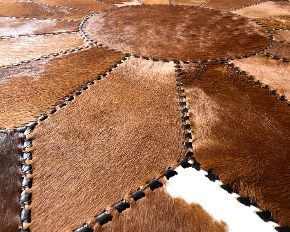 Expertly handcrafted from the premium Cowhides, these Cowhide Rugs are skillfully sewn together. These patchwork rugs present an eye-catching geometric version of the traditional cowhide. Each cowhide area rug is made up of a combination of spectacular color tones, making it ideal for any room.