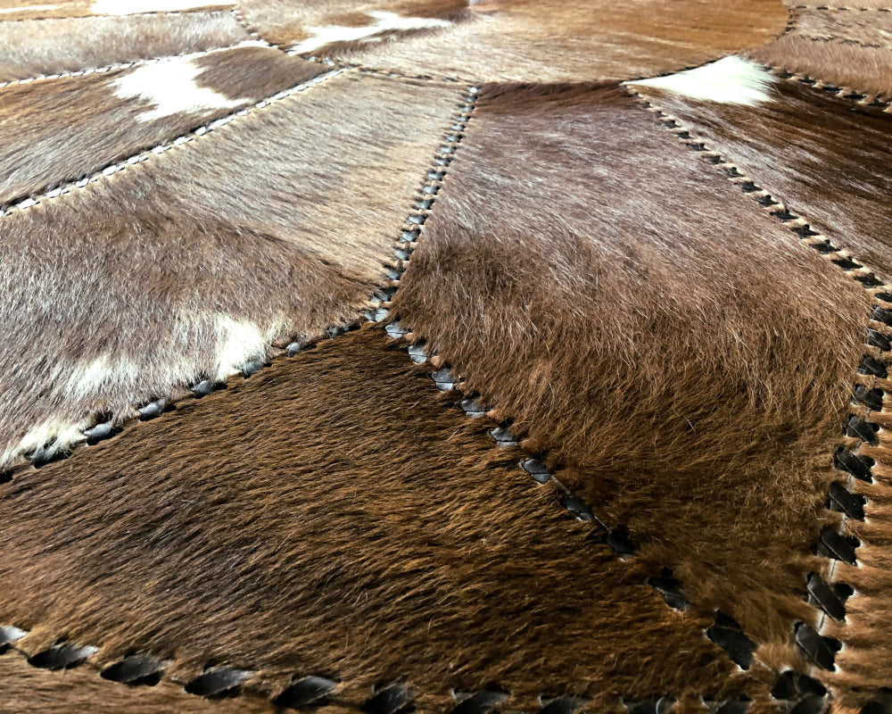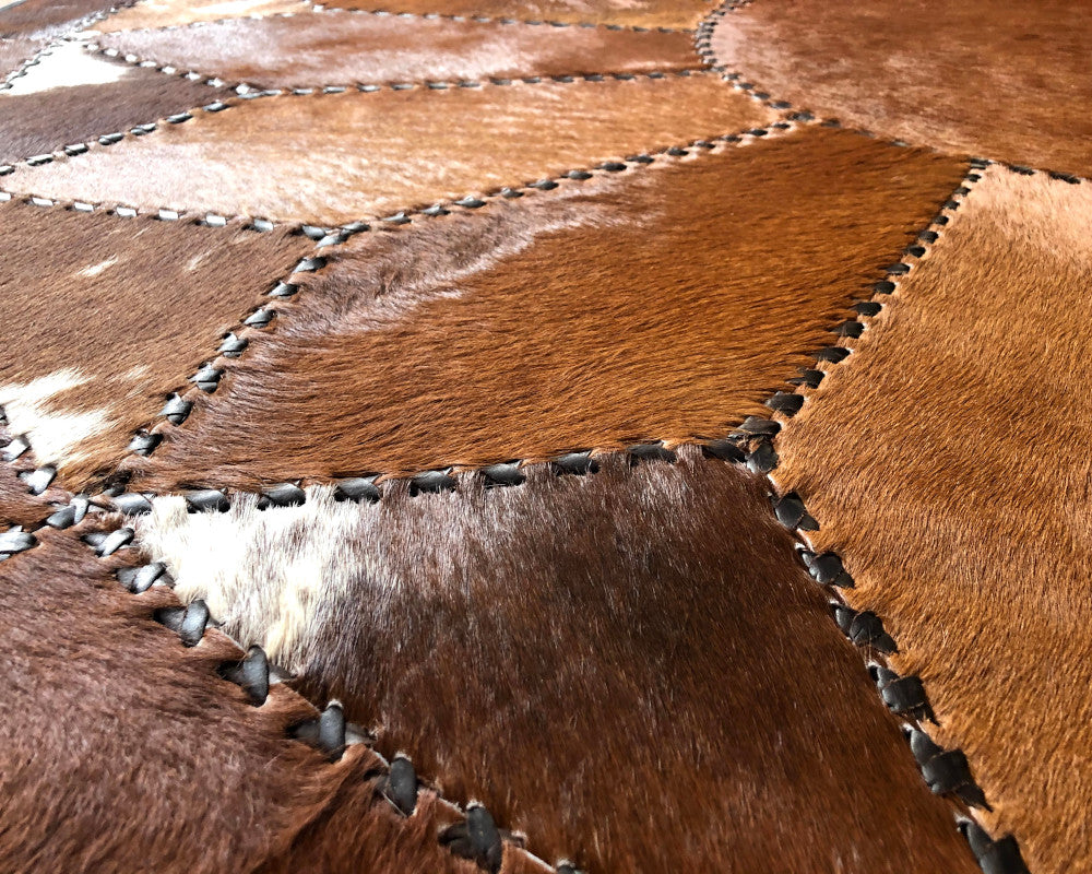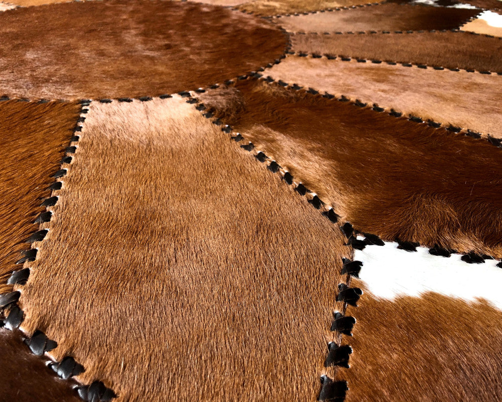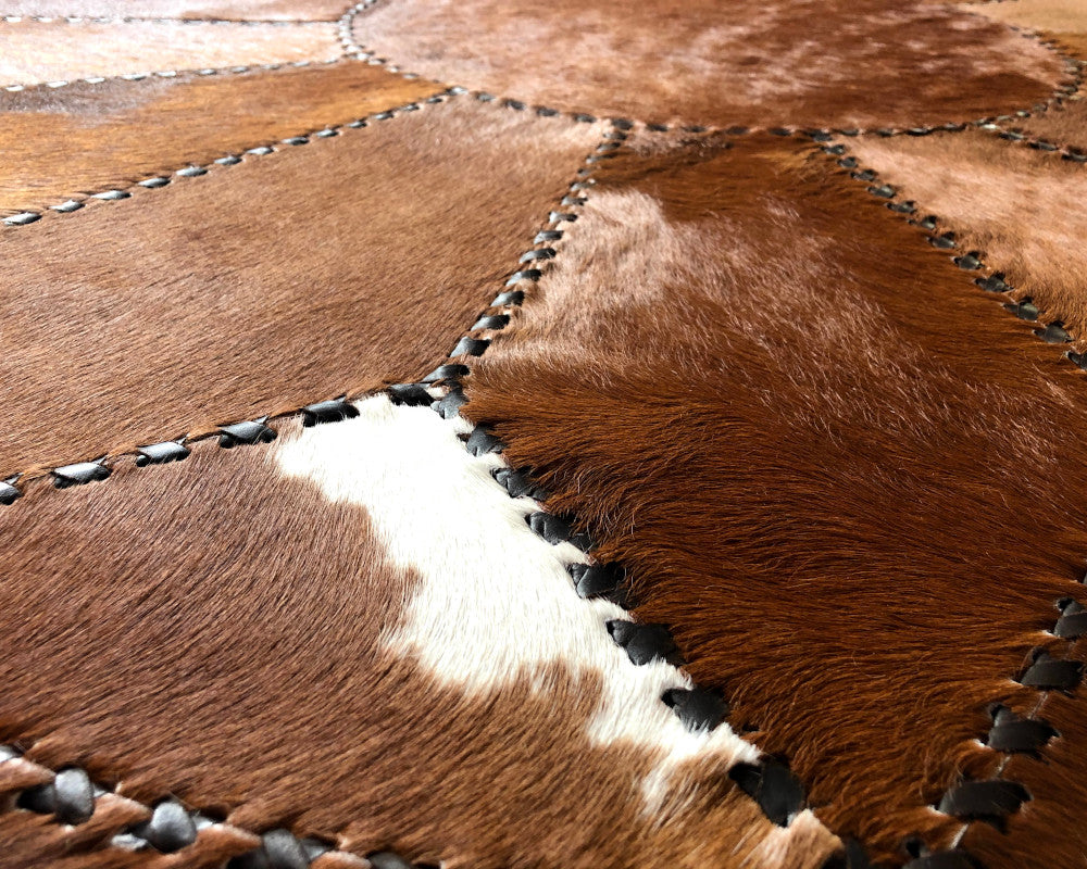Hand Stitched Cowhide Rug Patchwork Cow Skin Premium Leather Area Rug for Living Room | Hair on Leather Carpet | PR157