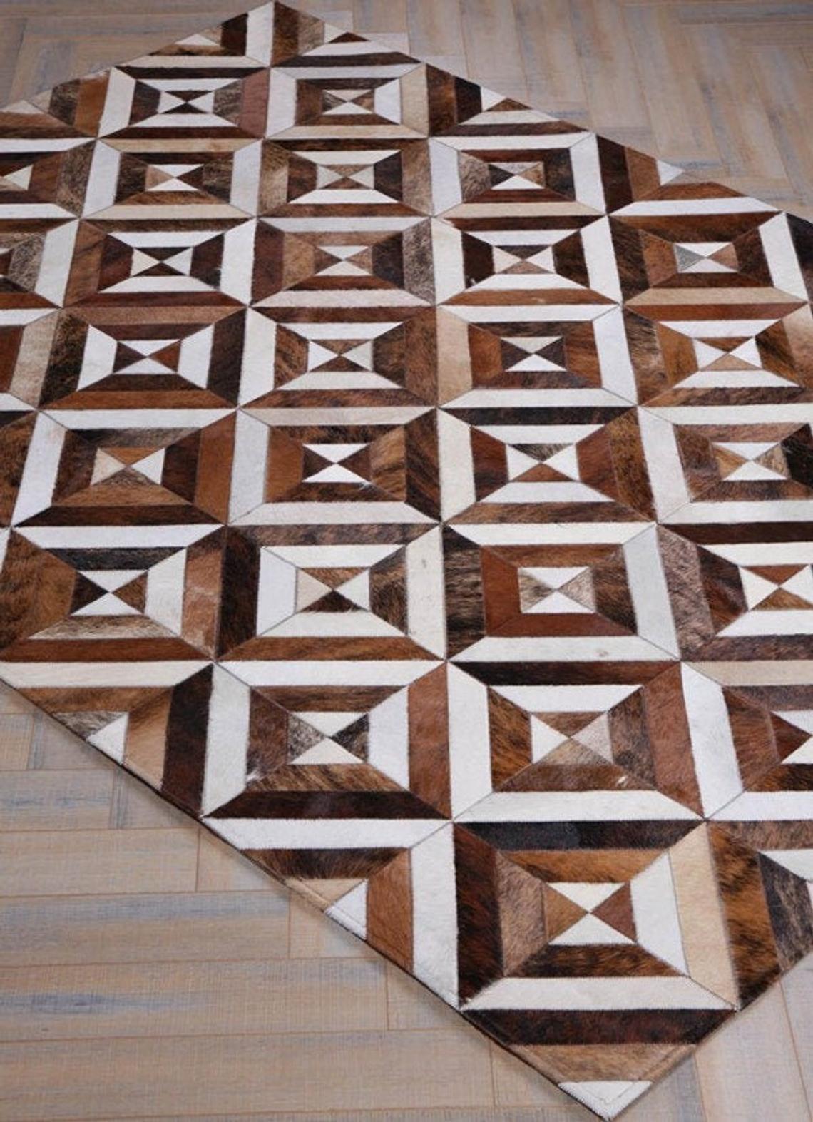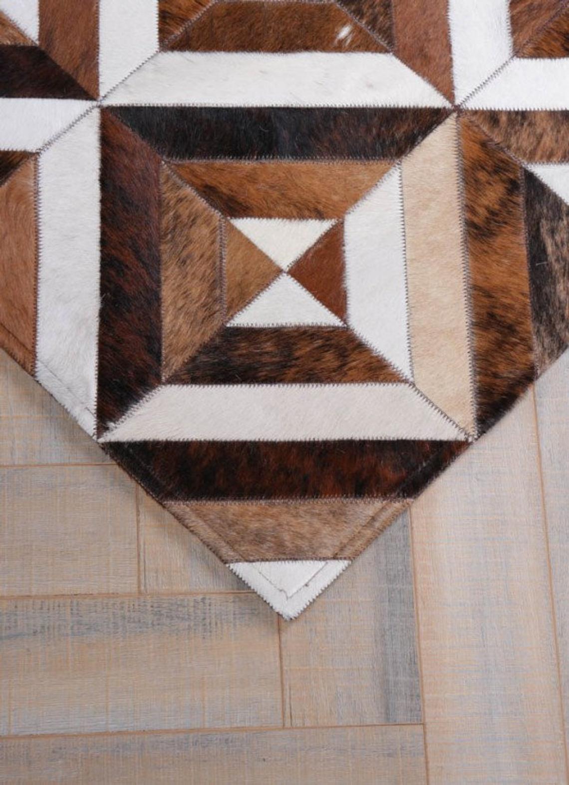 Expertly handcrafted from the premium Cowhides, these Cowhide Rugs are skillfully sewn together. These patchwork rugs present an eye-catching geometric version of the traditional cowhide. Each cowhide area rug is made up of a combination of spectacular color tones, making it ideal for any room.