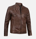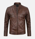 Men’s Sheepskin Distressed Coffee Brown Café Racer Leather Jacket