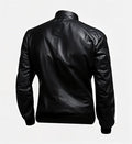 Men’s Sheepskin Leather Bomber Jacket – Black with Padded Shoulders
