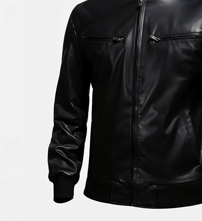 Perfect for casual outings, evening wear, or everyday style, this black leather bomber jacket blends classic craftsmanship with contemporary design—an essential piece for any man’s wardrobe.