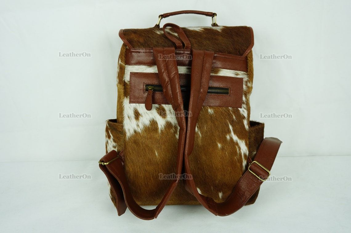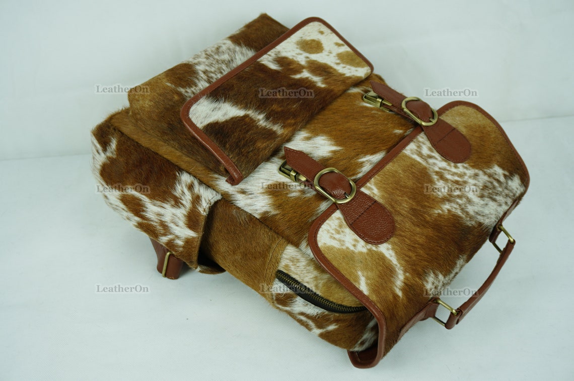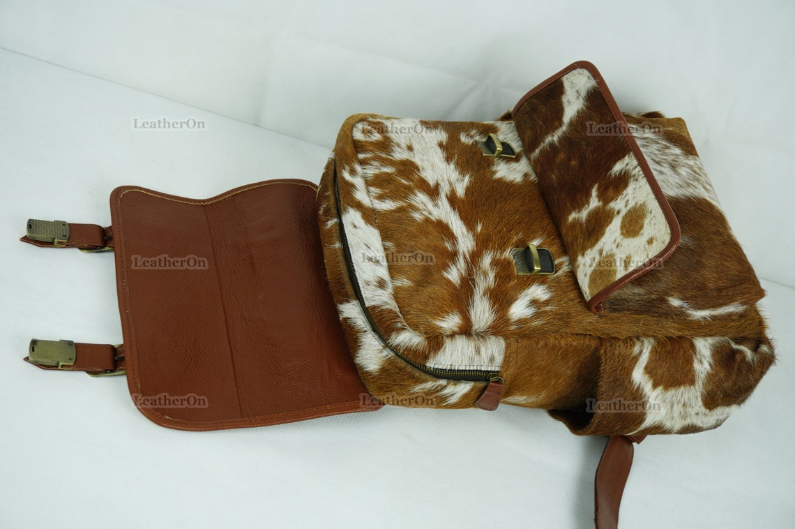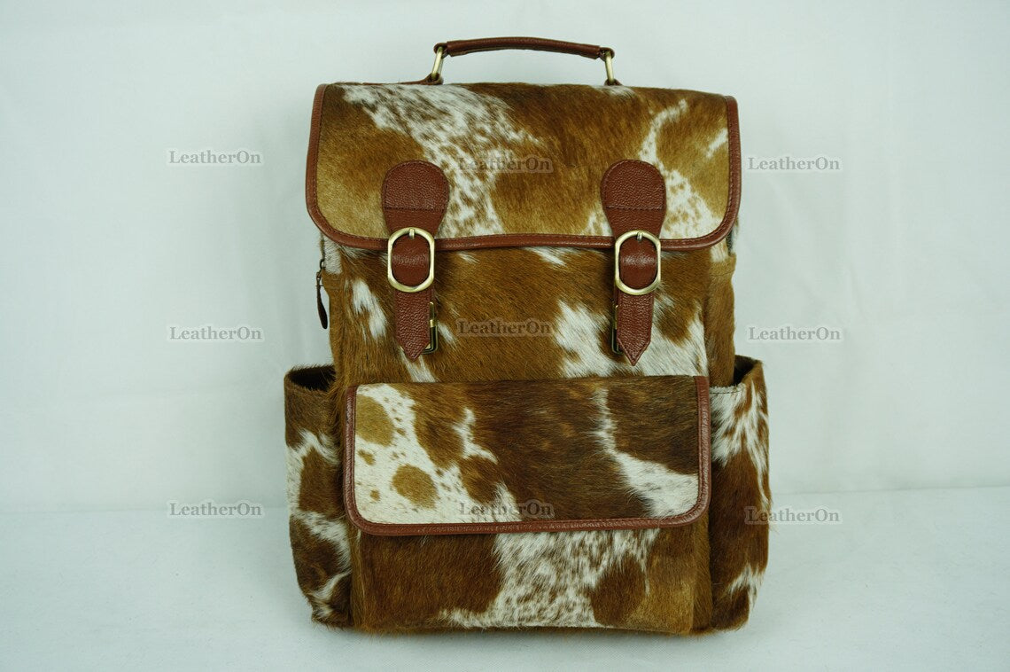 Cowhide Backpack | Real Hair On Cowhide Leather Backpack | Cowhide Diaper Bag | Cowhide School Bag | Cowhide Backpack with Key Lock | BP103