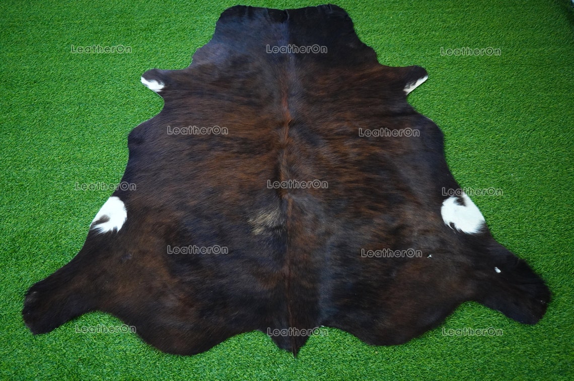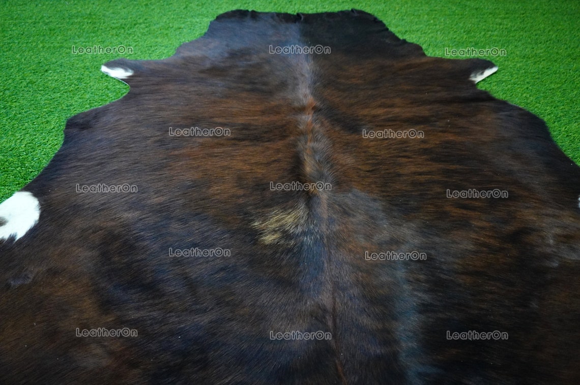 Medium (5 x 5 ft.) EXACT As Photo, Tricolor Brindle COWHIDE RUG | 100% Natural Cowhide Area Rug | Hair-on Cowhide Leather Rug | C640