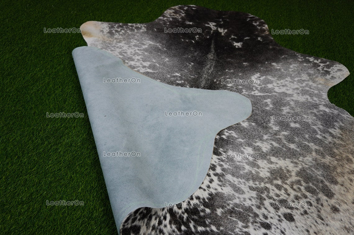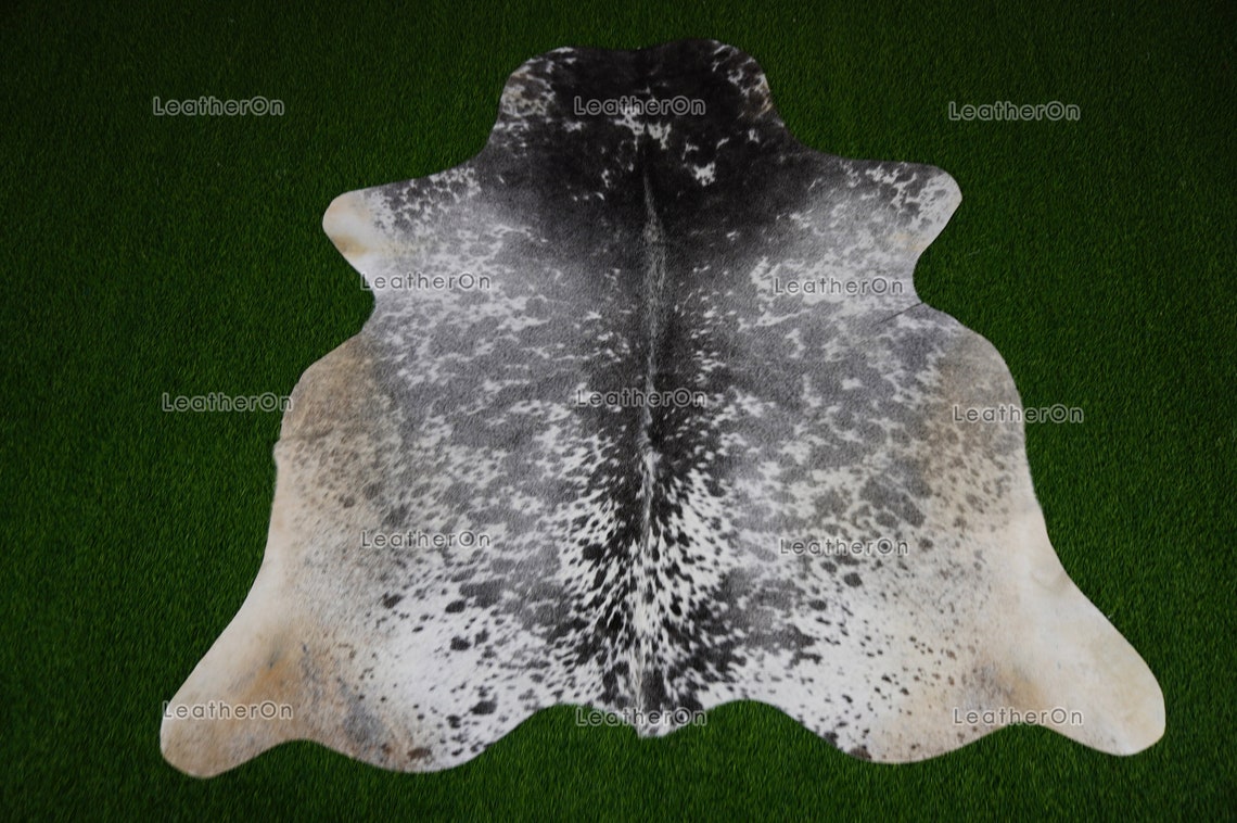 Gray White Cowhide (5 X 5 ft.) Medium Size Exact As Photo Cowhide RUG | 100% Natural Cowhide Rug | Real Hair-on Cowhide Leather Rug | C868