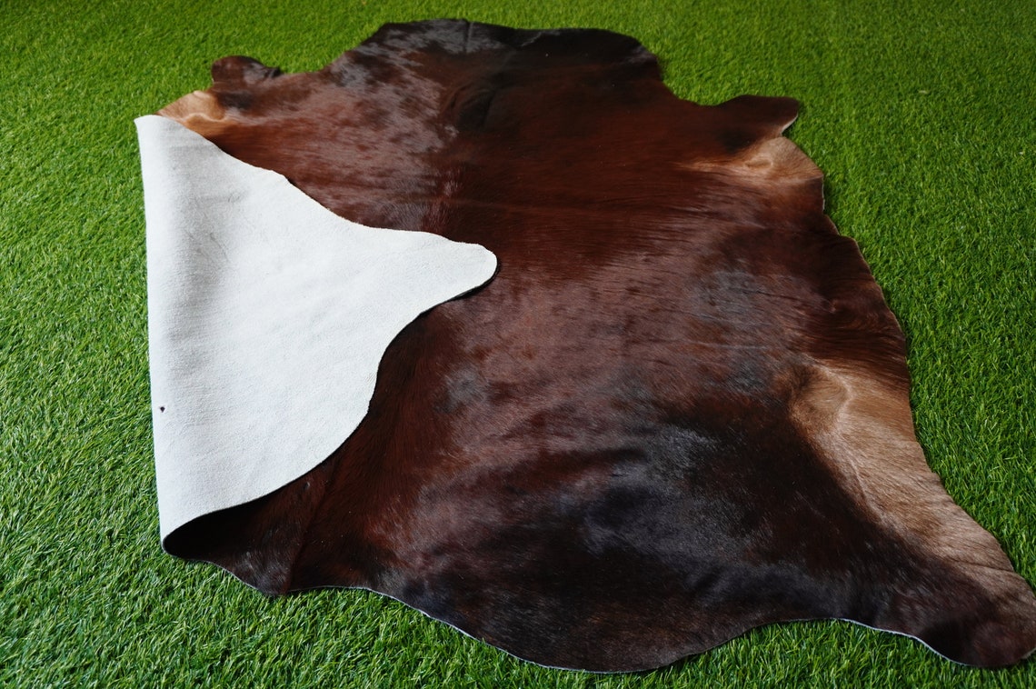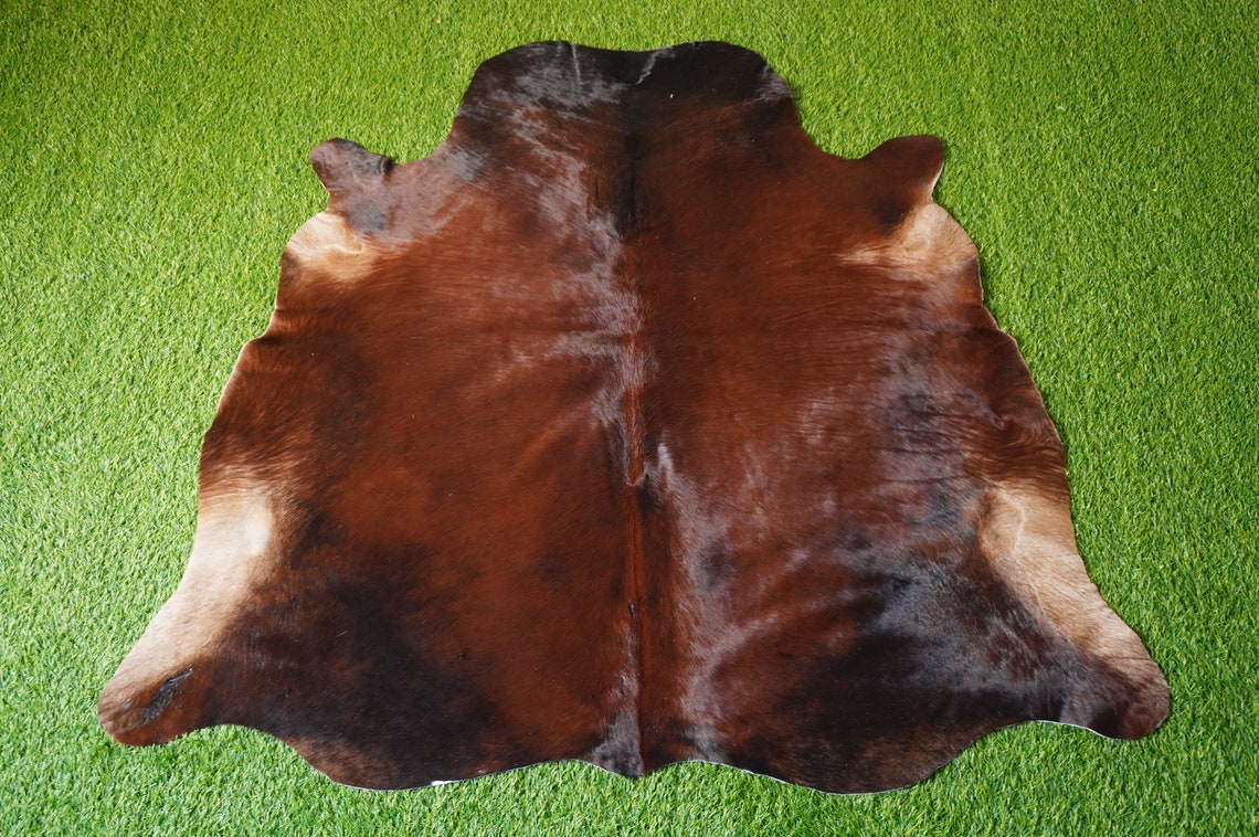 Small ( 4 x 4.3 ft.) EXACT As Photo, Brown Black COWHIDE RUG | 100% Natural Cowhide Area Rug | Hair-on Leather Cow Hide Rug | C523