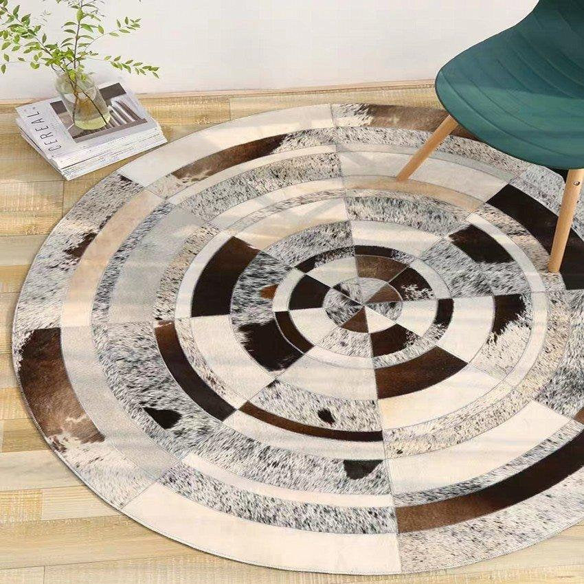 cowhide round patchwork rug