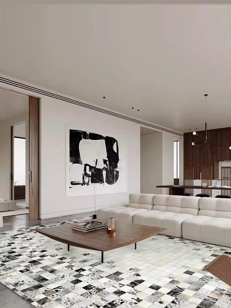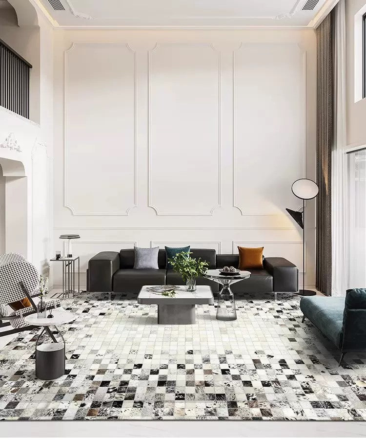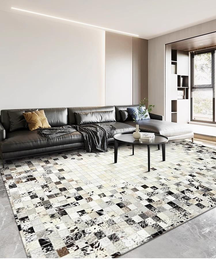 Natural Cowhide Patchwork Rug – Elegant Handmade Design