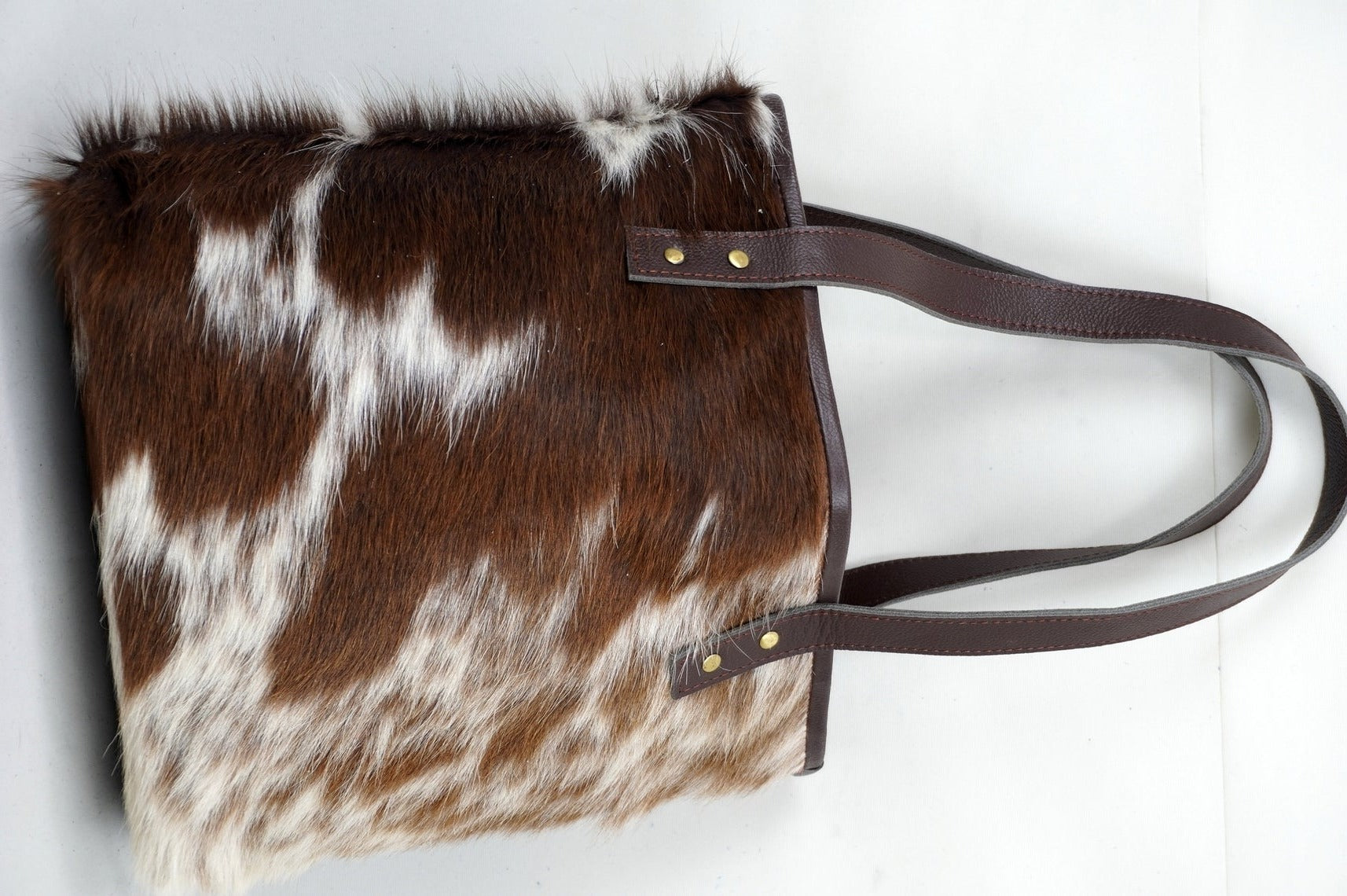 Natural Cowhide Tote Bags | Hair On Leather Cow Hide Handbags | Real Cow Skin Shoulder Bags | TB113