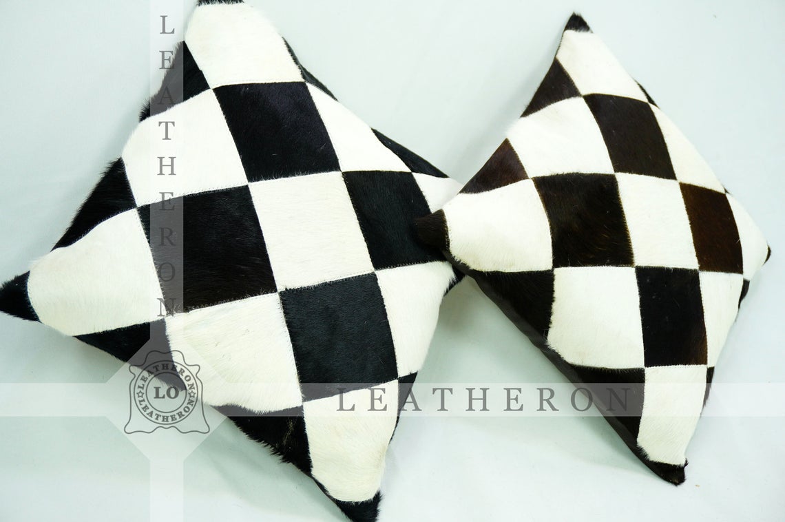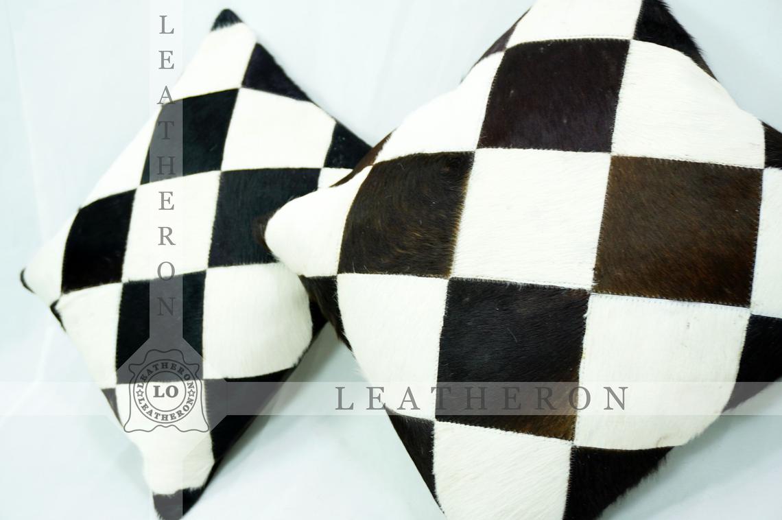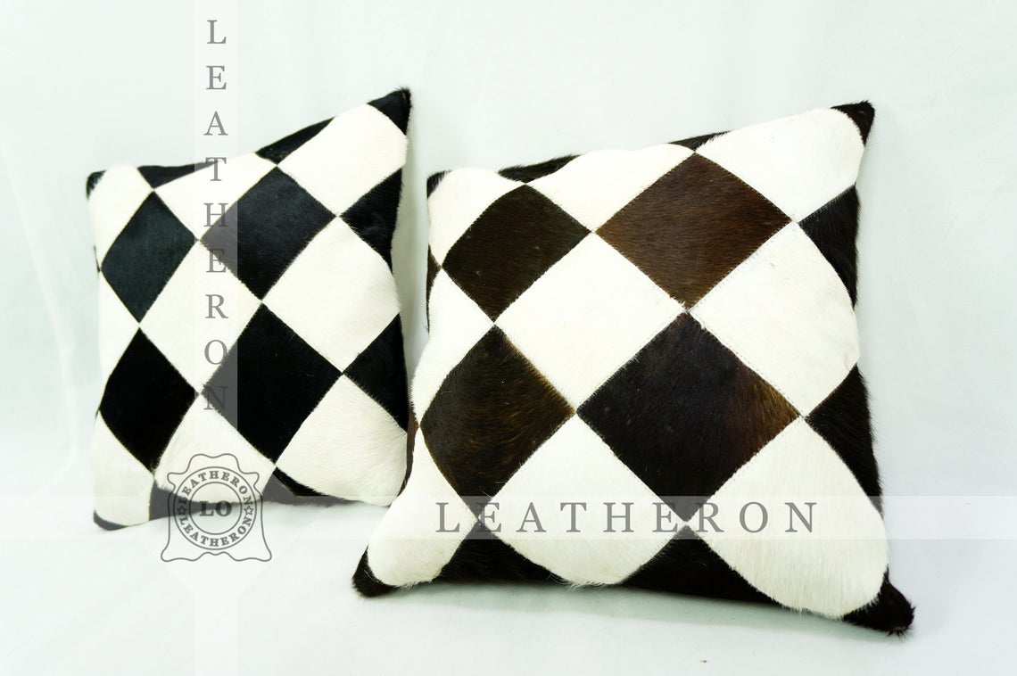 Patchwork Cowhide Pillow Covers Real Hair on Leather Pillow Cases Natural Cow Skin Cushion Covers | PLW 212