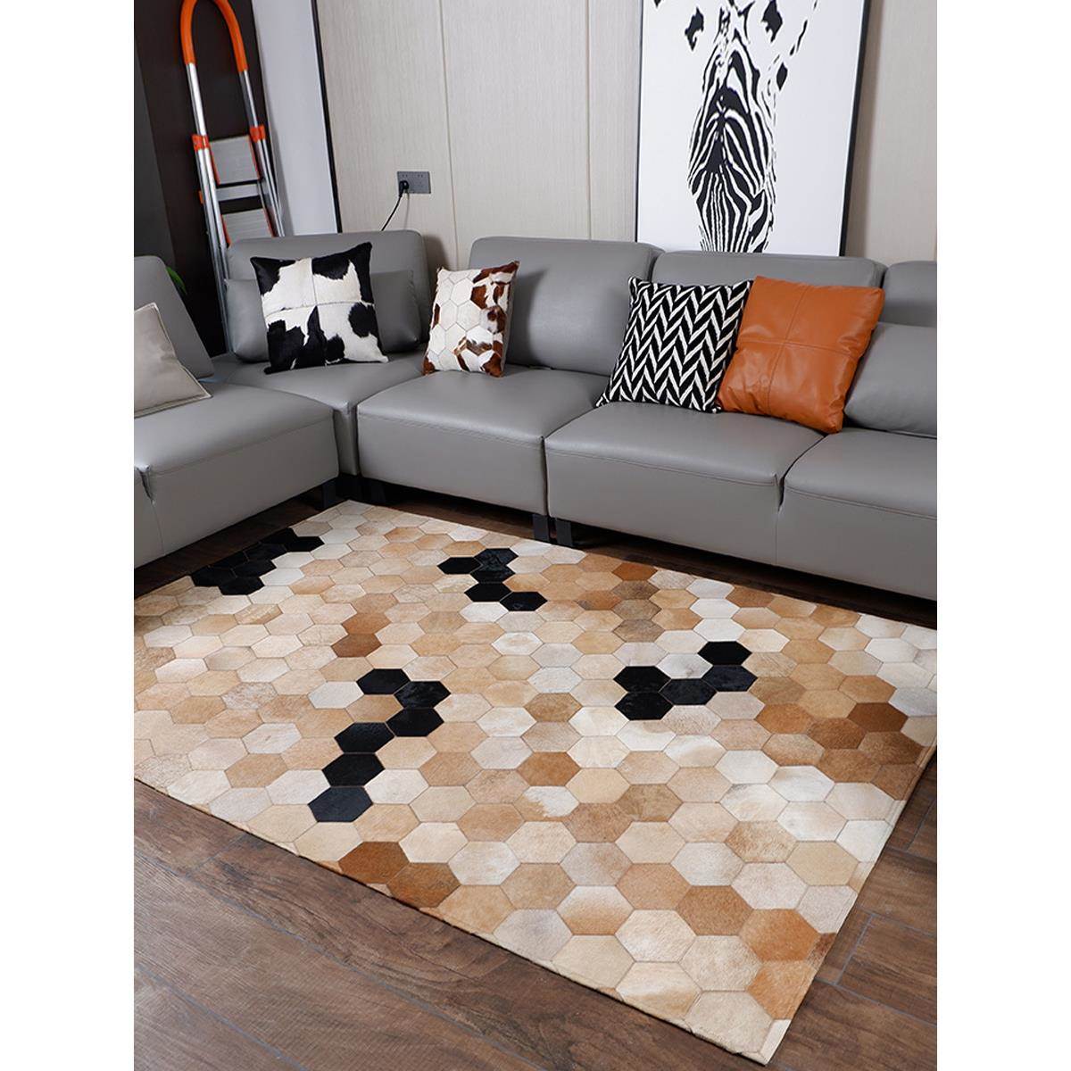 Premium Cowhide Patchwork Rectangle Rug – Handcrafted Natural Design