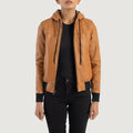 Women’s Hooded Sheepskin Leather Bomber Jacket with Fleece Lining