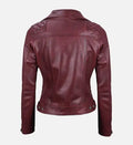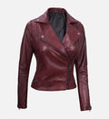Women’s Maroon Sheepskin Leather Biker Jacket – Asymmetrical Zip Style