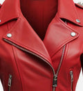 Women’s Red Sheepskin Asymmetrical Biker Leather Jacket with Stud Details