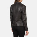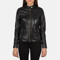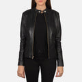 Designed for a sleek and confident look, this women’s leather jacket blends modern detailing with everyday comfort. Crafted from genuine sheepskin leather and finished with a smooth semi-aniline coating, it offers a refined appearance with a soft, supple feel. The quilted polyester lining provides comfortable insulation, while the band collar with snap button and zippered cuffs add a contemporary, edgy touch—perfect for casual and smart-casual wear.