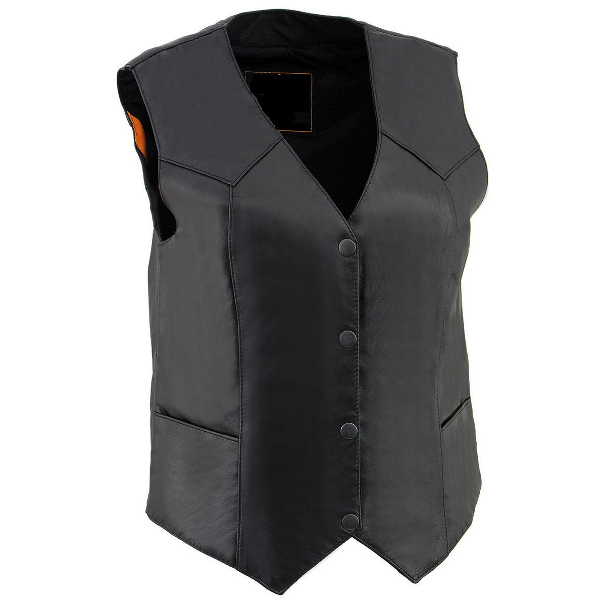 Women's Classic Western Motorcycle Rider Leather Vest - Real Lambskin Leather Vest for Females, Ladies Biker Vest