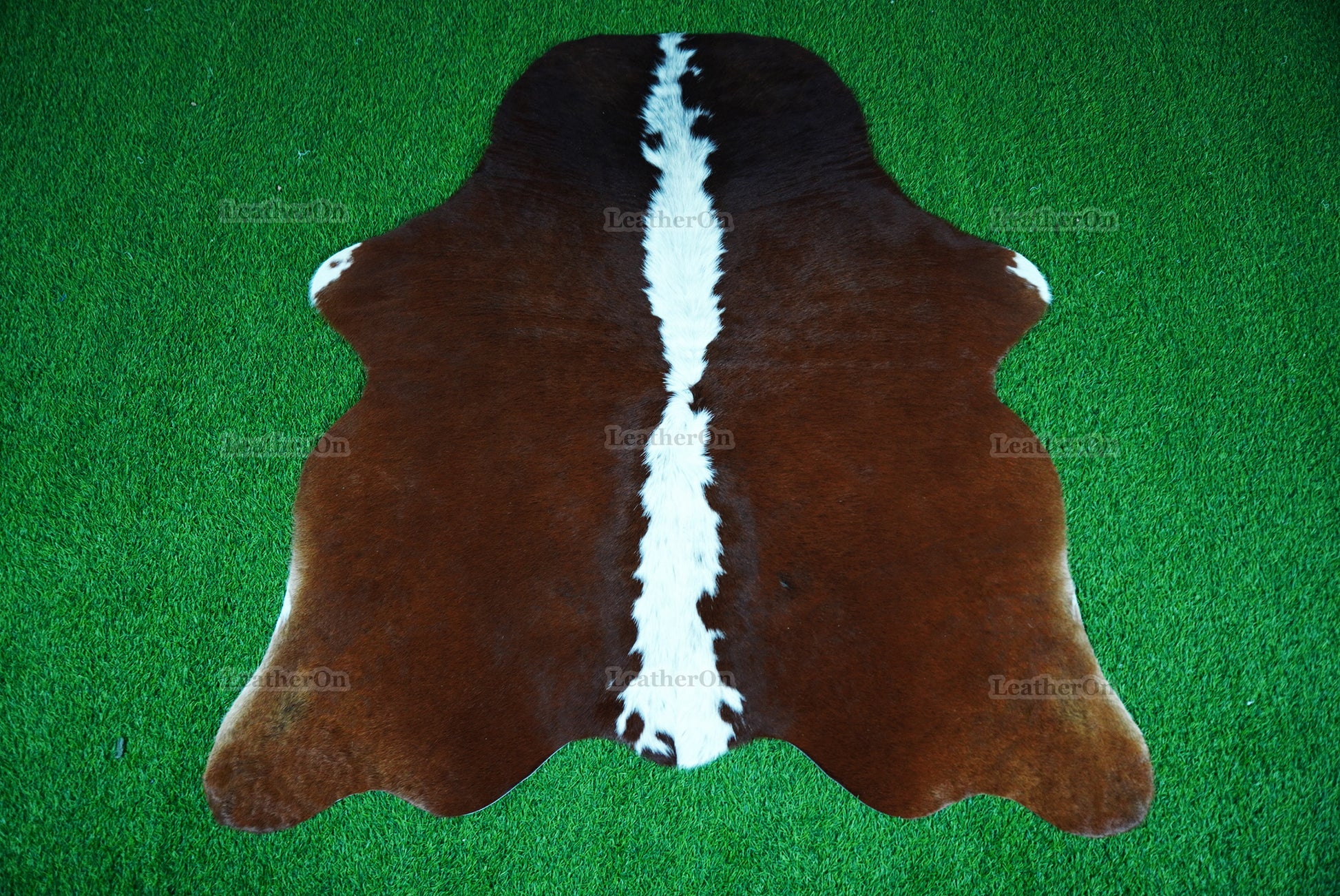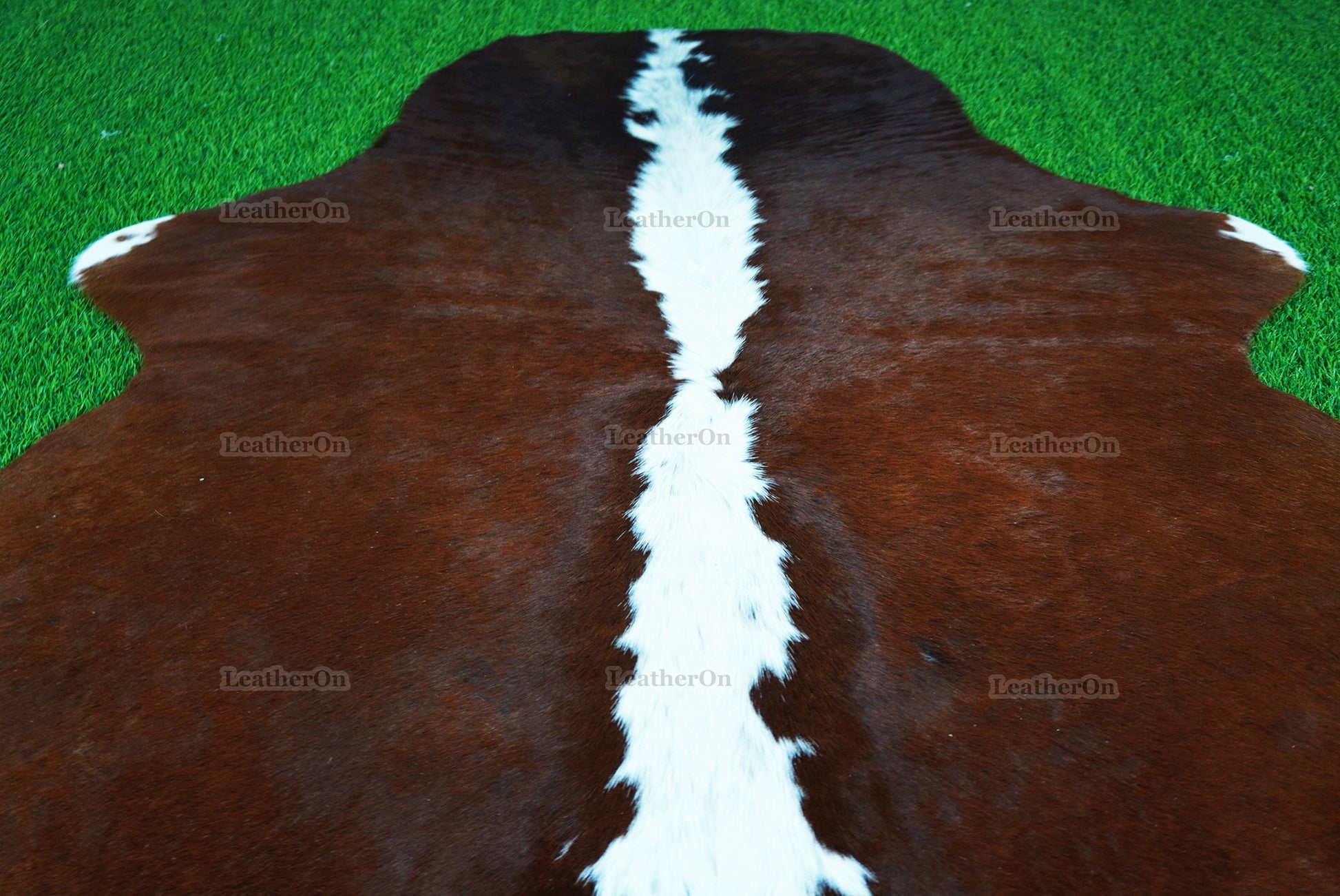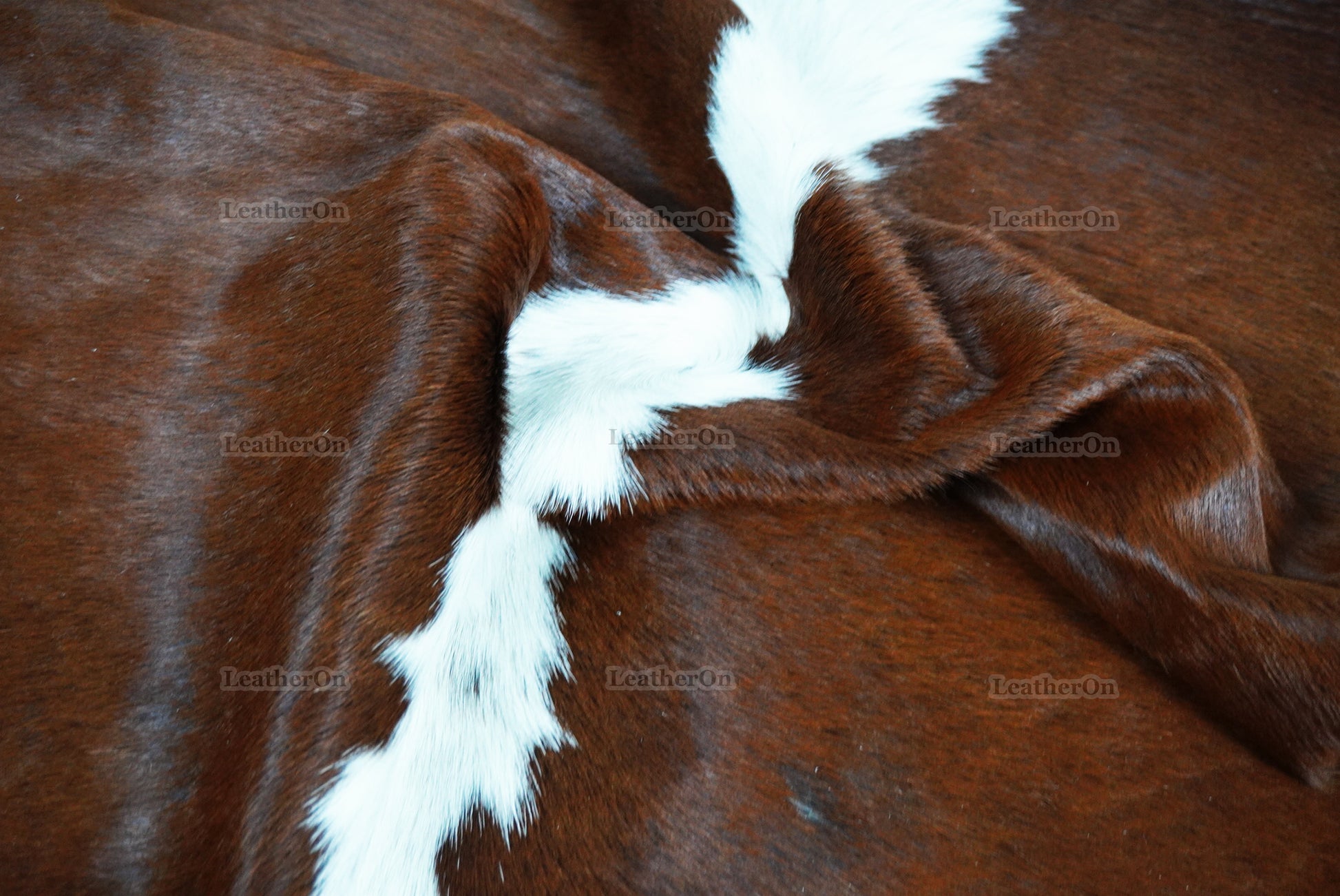 Brown White Cowhide (4.5 X 4.3 ft.) Exact As Photo Cowhide Rug | 100% Natural Cowhide Area Rug | Real Hair-on Leather Cowhide Rug | C877