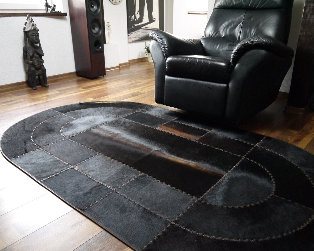 Handmade Cowhide Patchwork Carpet Silky Soft Hair on Leather Area Rug ( Similar As Pictured )