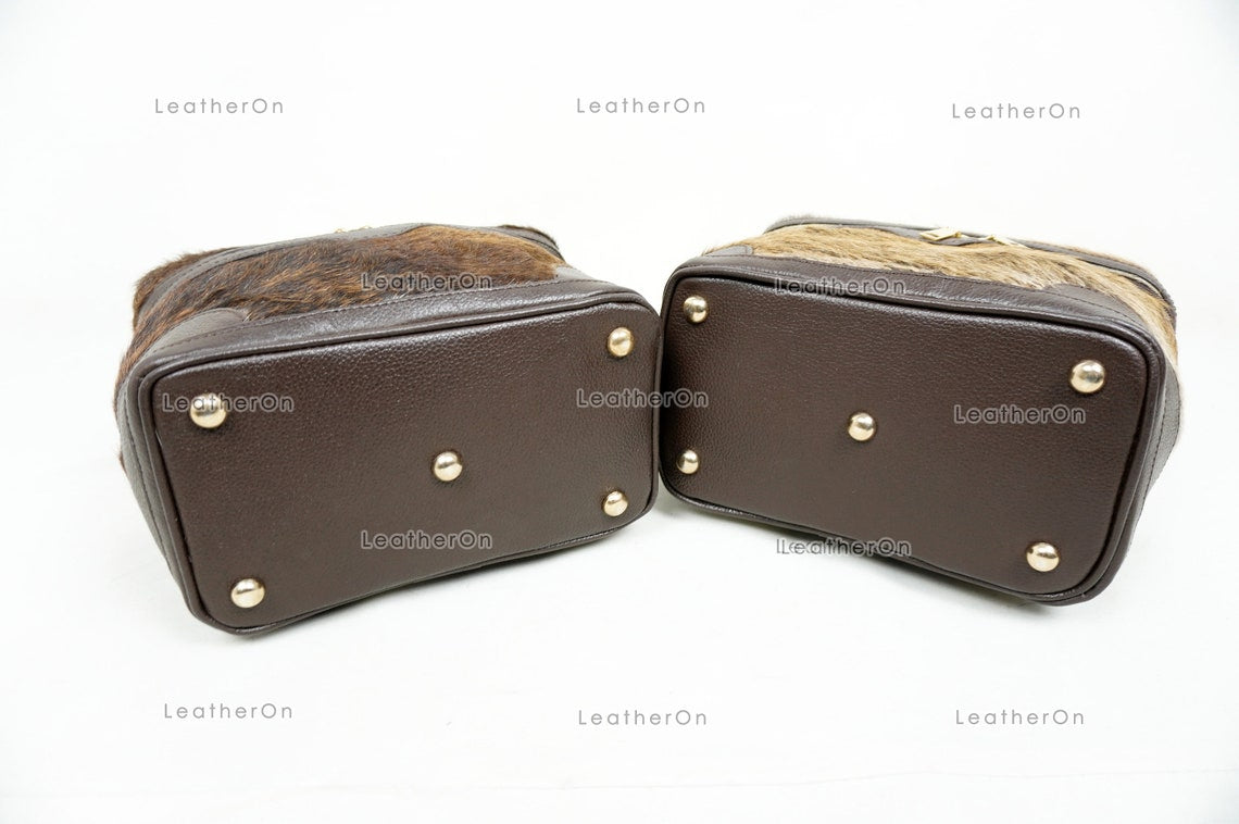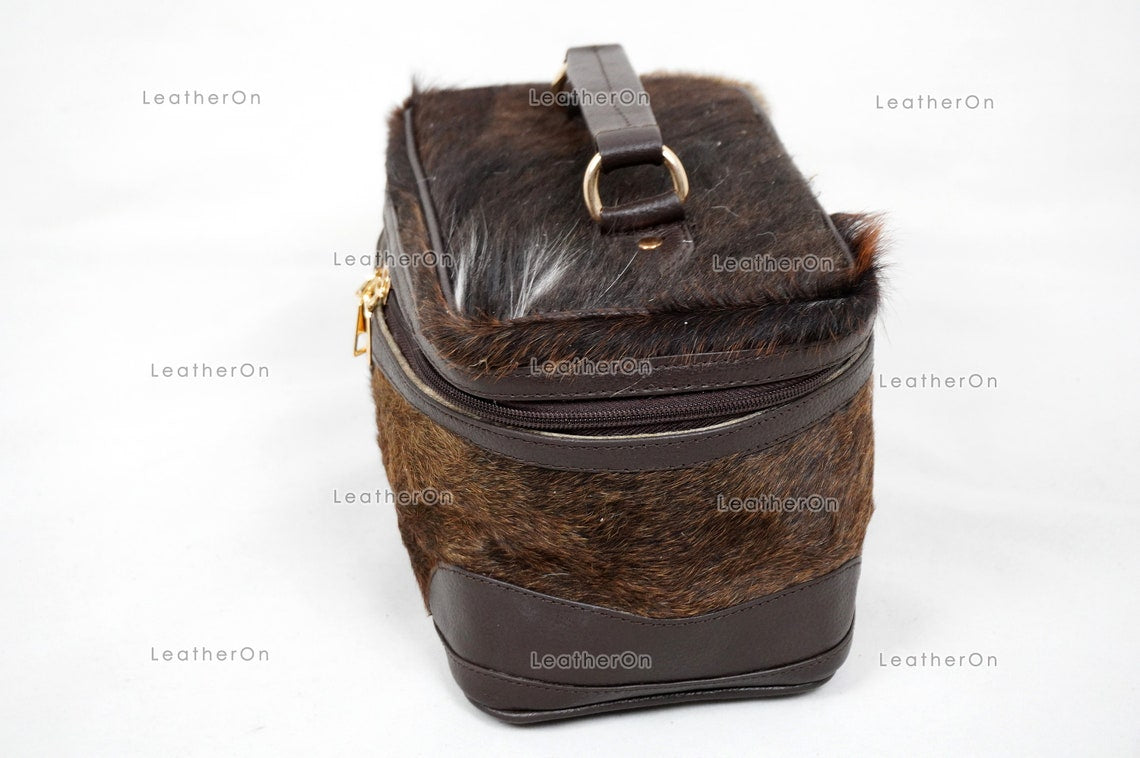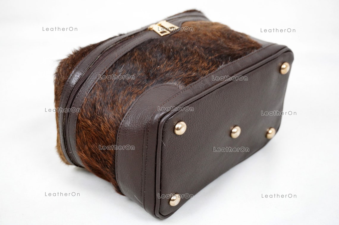 Cowhide Beauty Box Bag | 100% Natural Cowhide Top Handle Bag | Real Hair On Cowhide Leather Ladies Bag | BOX04