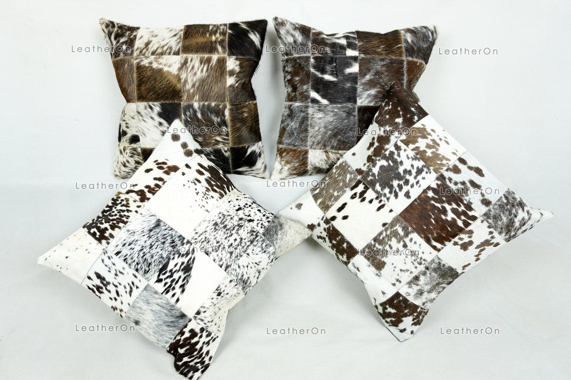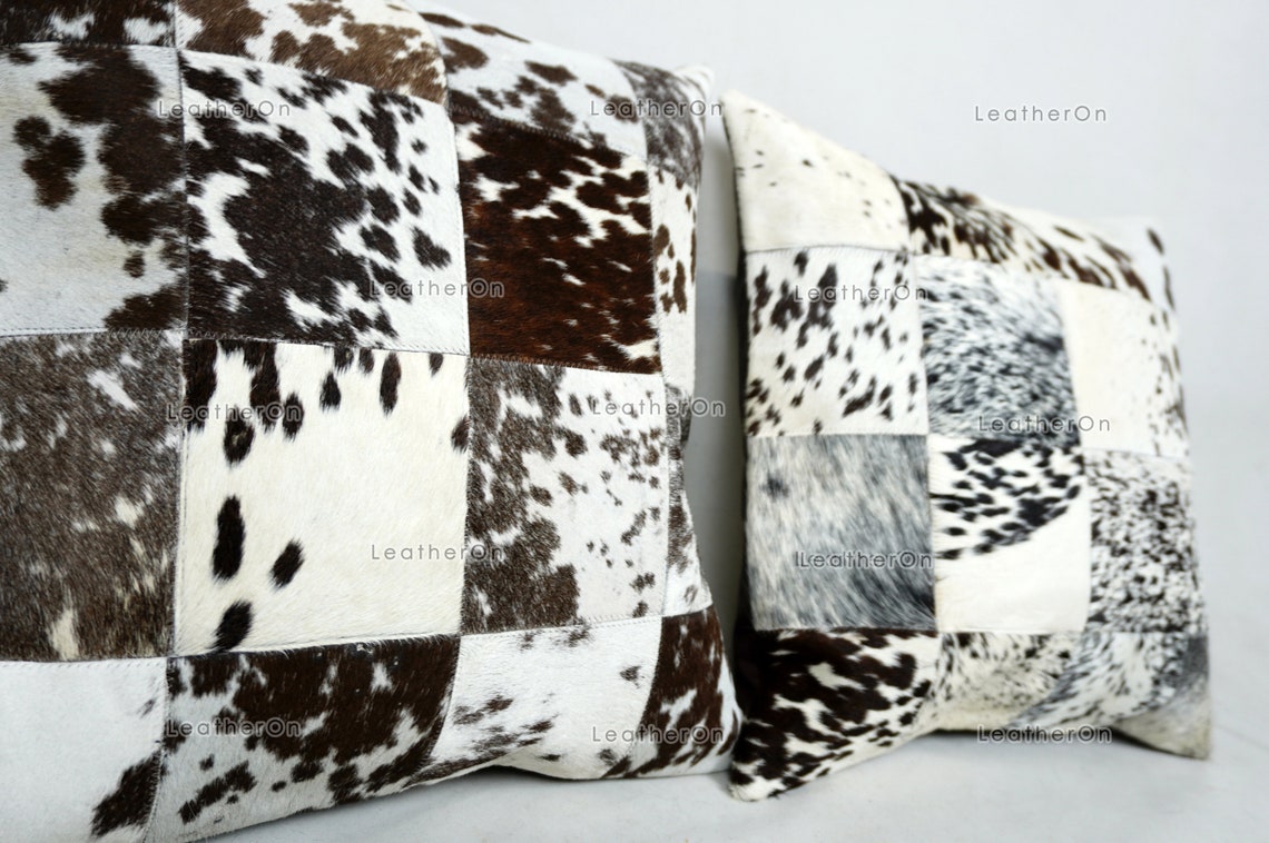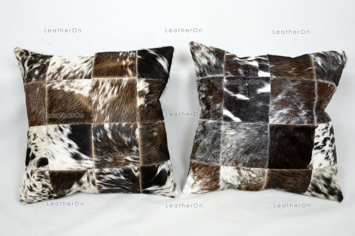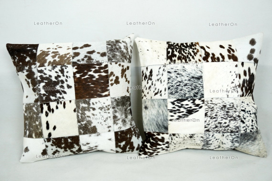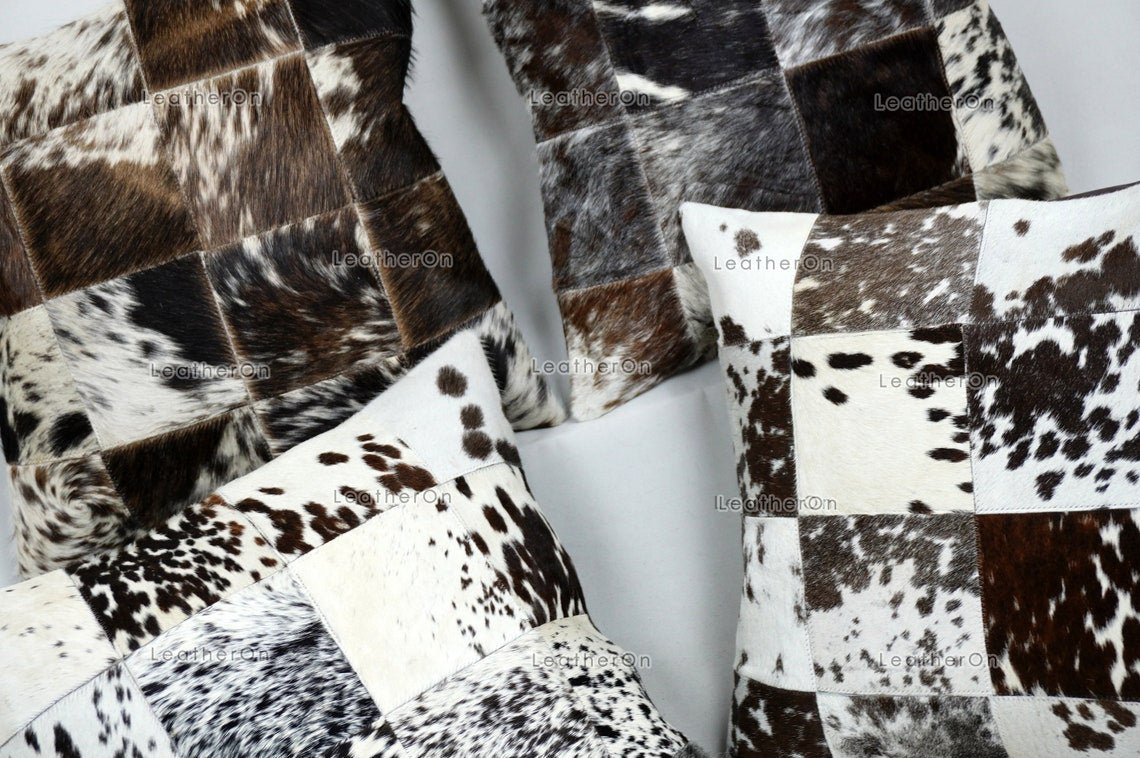 Cowhide Patchwork Pillows Covers 100% Natural Hair on Cowhide Leather Pillow Cases | PLW227