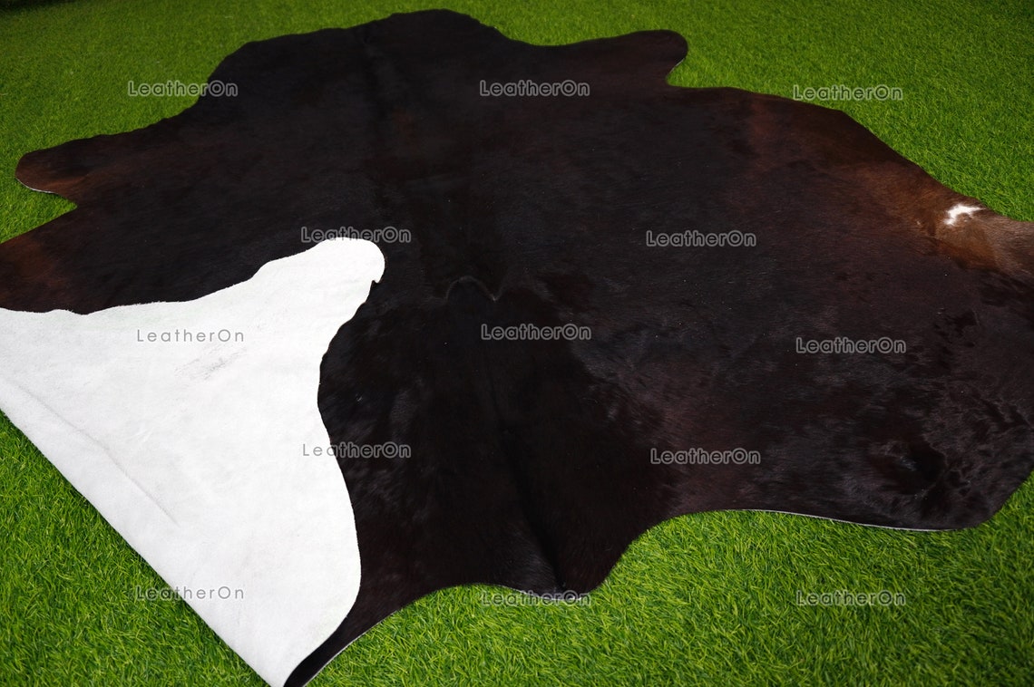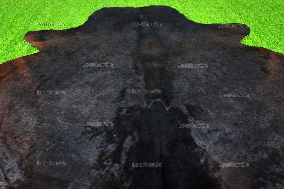 Black, XLARGE (6.3 X 5.6 ft.) Exact As Photo Cowhide Rug | 100% Natural Cowhide Area Rug | Real Hair-on Leather Cowhide Rug | C700